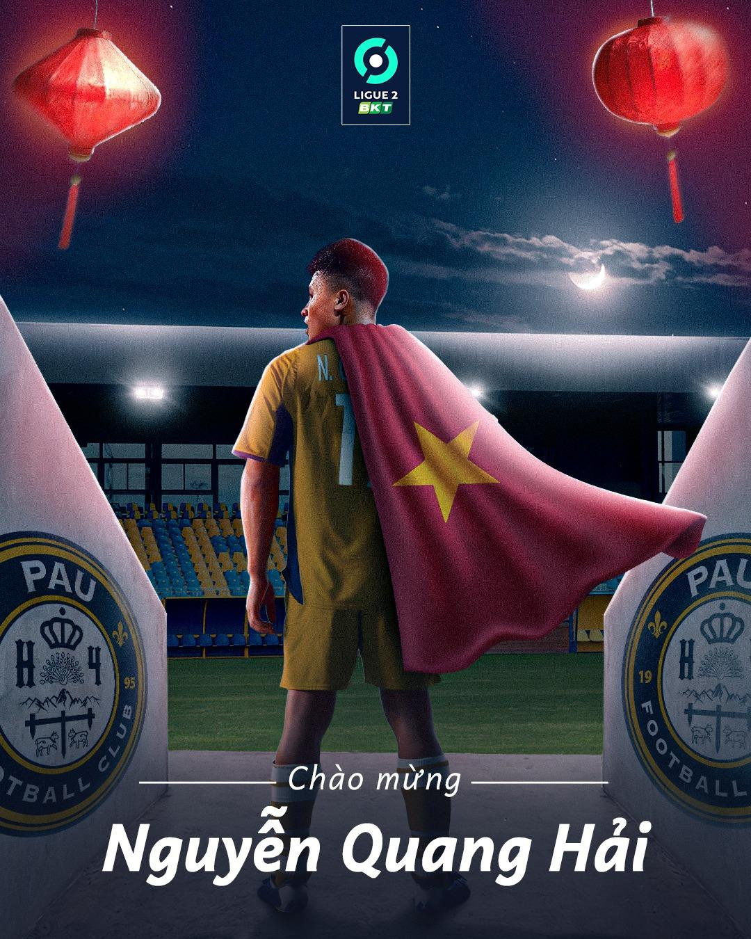 Cũng trong tối qua, trang Facebook chính thức của Ligue 1 đăng ảnh chào đón Quang Hải. Trong ảnh, ngôi sao 25 tuổi mặc chiếc áo màu vàng của Pau FC và khoác lên mình lá cờ Việt Nam.