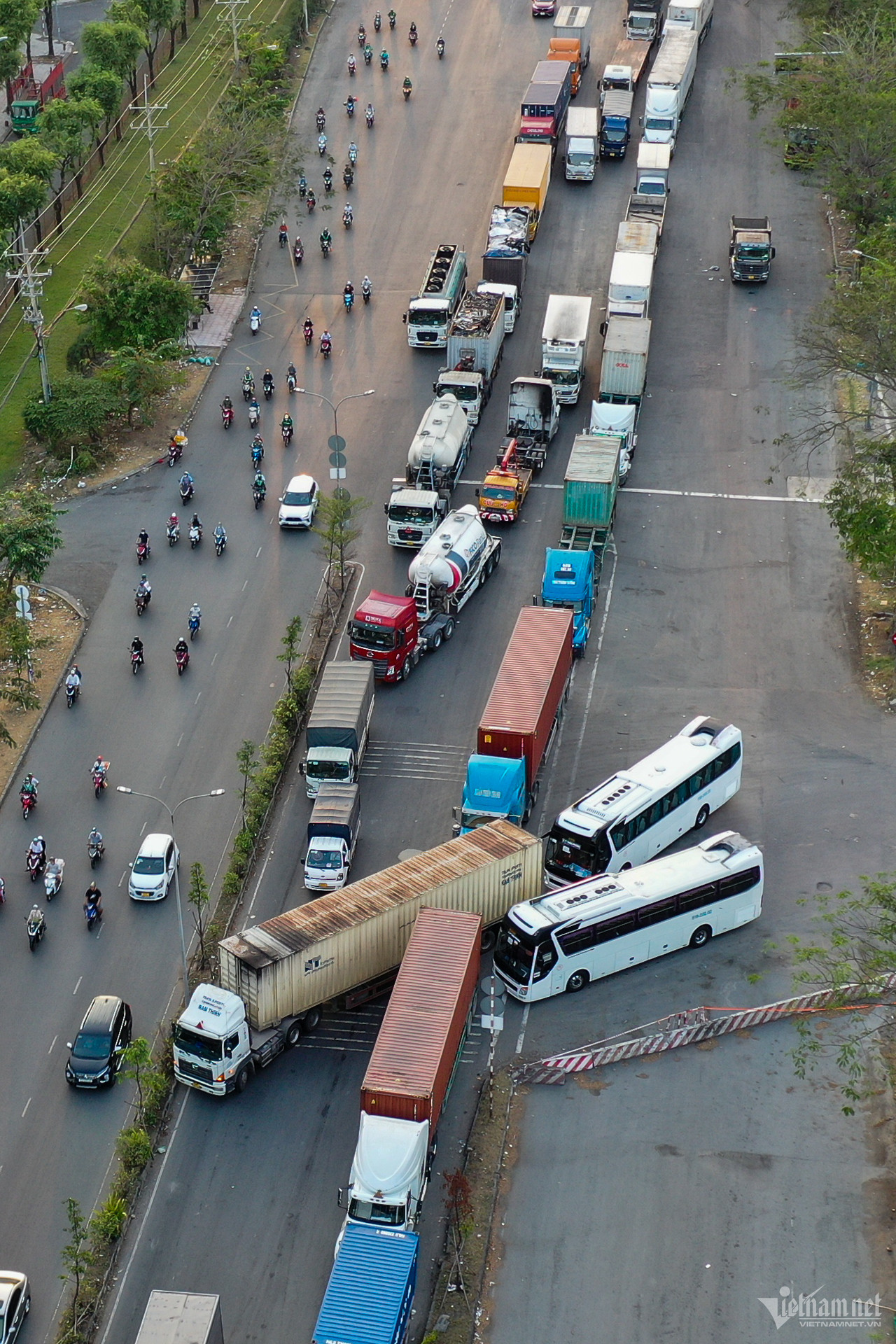 Tình trạng ùn ứ tập trung nhiều nhất ở luồng ô tô, xe container. Nhiều biển báo, chỉ dẫn phân luồng giao thông được dựng lên xung quanh để người đi đường nắm bắt lộ trình di chuyển.