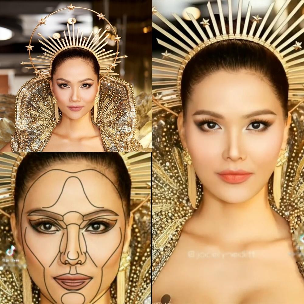 Hoa hậu H’Hen Niê cũng có gương mặt gần như đạt chuẩn tỷ lệ vàng. H’Hen Niê sau khi chỉnh sửa đẹp đúng chuẩn mỹ nhân với đường nét hài hòa, nhưng cư dân mạng lại thích ngắm nàng Hậu như bây giờ hơn, vì nhìn rất cá tính và ấn tượng.