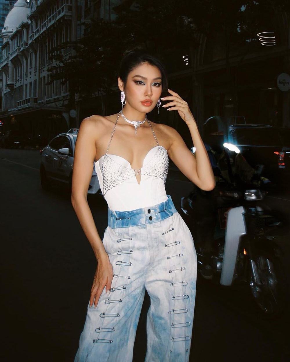 Trước đó, Á hậu 1 của Hoa hậu Hoàn vũ Việt Nam 2022 cũng từng gây bất ngờ với màn kết hợp nội y kim loại ra bên ngoài, như một món phụ kiện trang trí cho diện mạo thêm phần độc đáo.