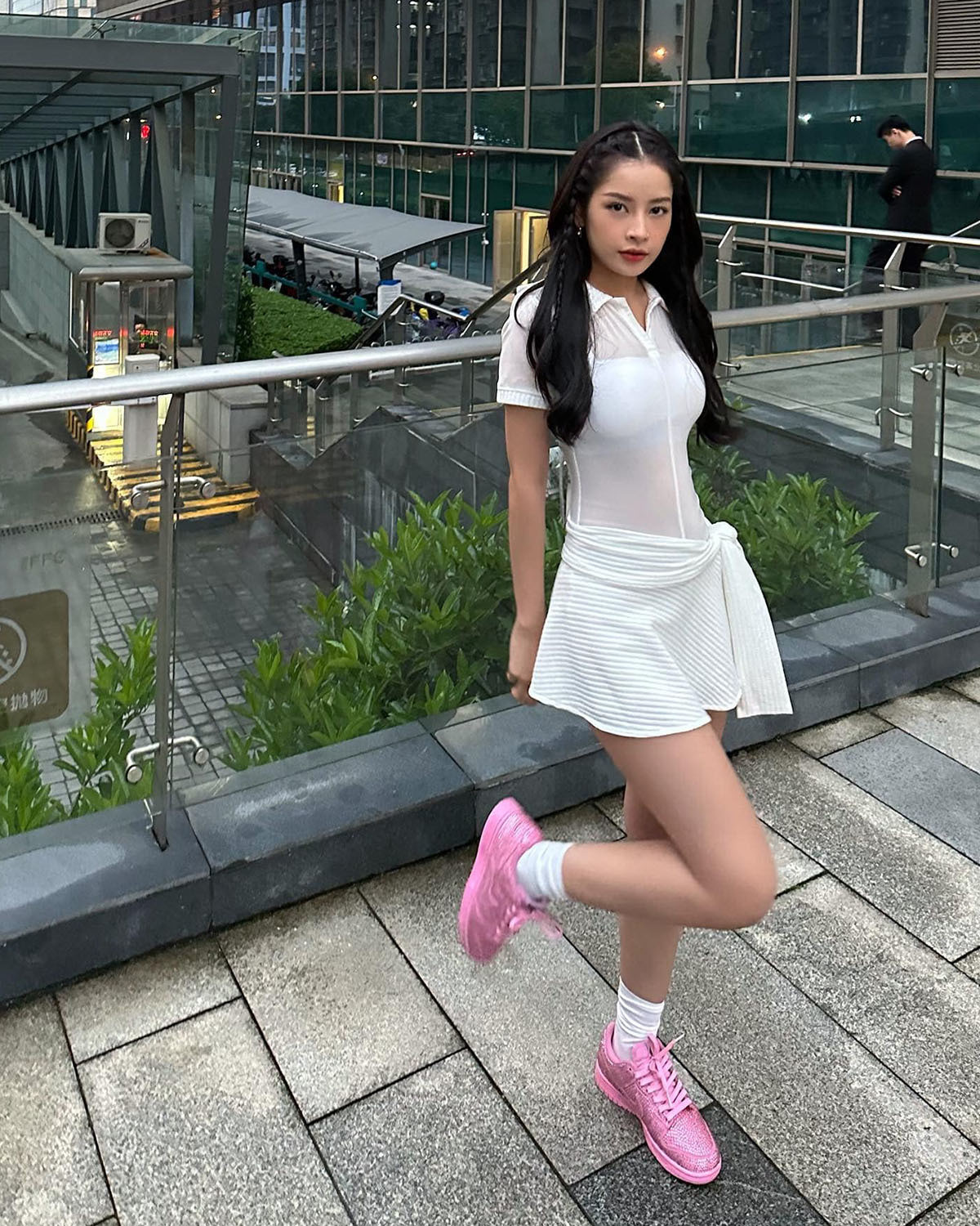 Thêm một điều thú vị nữa là chiếc áo thun mà Thảo Nhi Lê mặc cũng đụng hàng với Chi Pu. Trong chuyến sang Trung Quốc tham gia chương trình Đạp gió 2023, Chi Pu cũng chọn mẫu áo mỏng manh này để khoe dáng chuẩn.