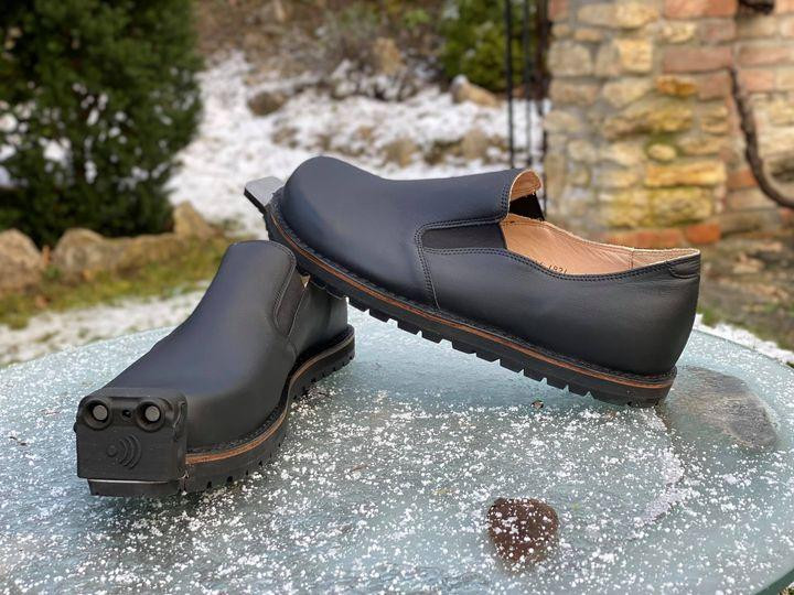 Mẫu giày hiện được trang bị các cảm biến để phát hiện chướng ngại vật. Ảnh: Tec-Innovation