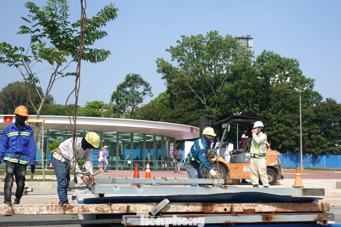 | Hàng rào chắn cuối cùng ở khu vực thi công hạng mục giếng trời lấy sáng được tháo dỡ vào sáng 25/4. |