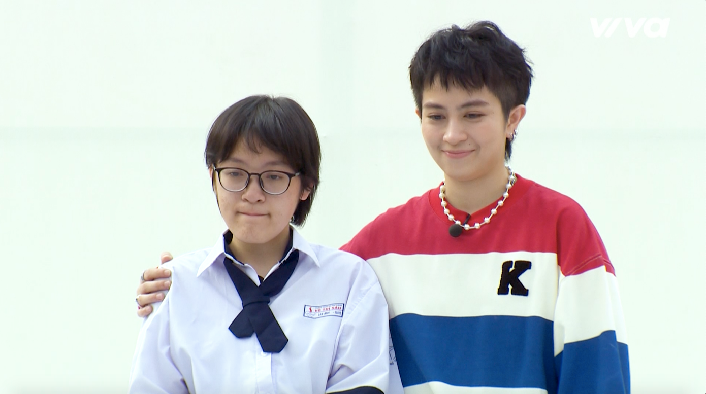 Ở một diễn biến khác, Gil Lê đã rất xúc động và không kiềm được nước mắt khi lắng nghe câu chuyện của nam sinh 17 tuổi - Quốc Đại. Cậu bạn tự hào chia sẻ về người mẹ bán hàng rong của mình, người bán từng tô bún để nuôi dưỡng cậu và em.