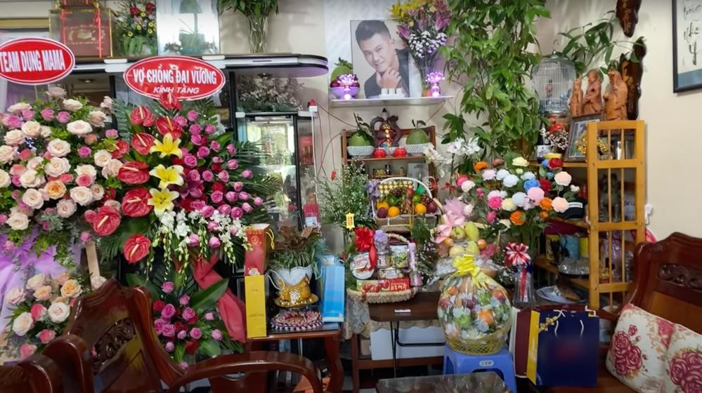 Rất nhiều lẵng hoa, trái cây của bạn bè đồng nghiệp gửi đến cho cố ca sĩ. Buổi giỗ đầu của Vân Quang Long tại nhà riêng của ba mẹ ruột thuộc thành phố Sa Đéc (Đồng Tháp) còn có sự góp mặt của vợ đầu Ái Vân và hai con lớn.
