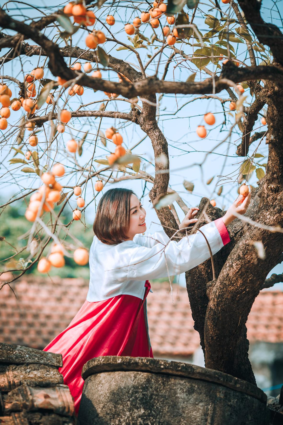 | Cây hồng gần 200 tuổi tại Hoa Lư, Ninh Bình giữa khung cảnh như trong phim cổ trang Hàn Quốc. |