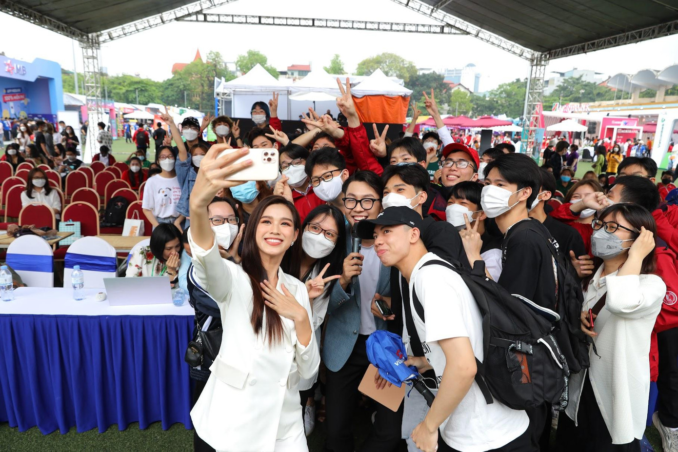 Đặc biệt, Hoa hậu Việt Nam 2020 Đỗ Thị Hà cũng tới tham dự chương trình, giao lưu và chụp ảnh "check-in" với các bạn trẻ. Hoa hậu Đỗ Thị Hà cho biết, cô nàng rất vui khi tham gia chương trình Sóng Festival - Ngày Thẻ Việt Nam lần 2, được sống trong không khí sôi động và giàu năng lượng tích cực từ các bạn trẻ, các bạn sinh viên đồng trang lứa.