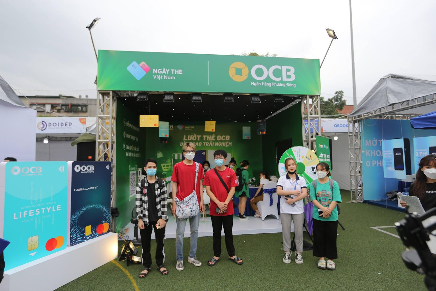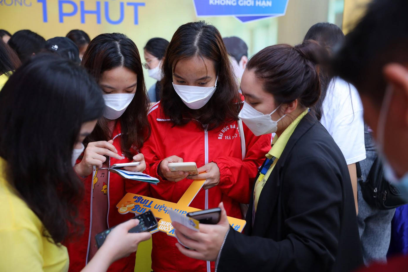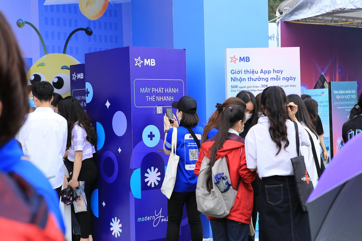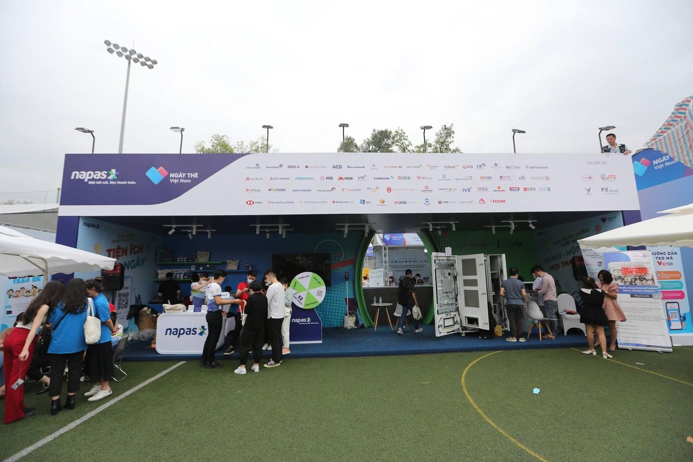 Chỉ mất 10 giây, các bạn sinh viên check-in và nhận ngay 50.000 đồng trong tài khoản tại gian hàng công ty Napas, thật dễ dàng "nhập hội" với xu hướng thanh toán không tiền mặt phải không nào! Các bạn trẻ có thể thực hiện thanh toán khi mua sắm tại gần 100 gian hàng ẩm thực, làm đẹp và chăm sóc sức khỏe, văn hóa, giải trí... Bạn cũng có thể nạp tiền vào thẻ ngay tại khu vực của ngân hàng tương ứng trong khuôn khổ ngày hội. Ngoài nhận tiền trong tài khoản, các bạn trẻ cũng có thể tham gia các trò chơi bằng cách trả lời câu hỏi nhận phần quà: nến thơm, gấu bông...