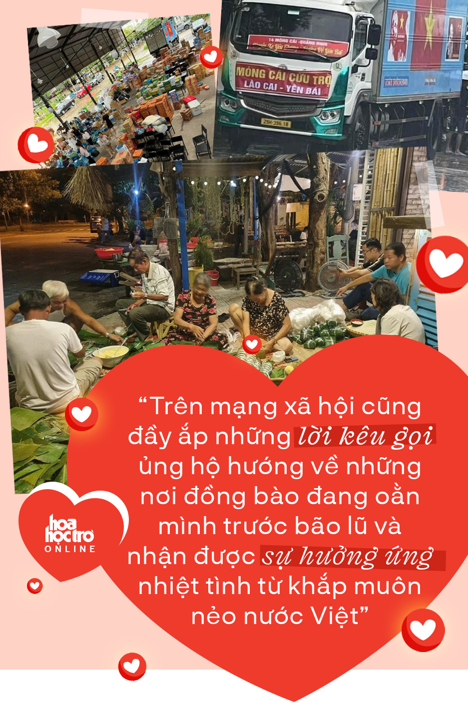 Đồng thời, trên mạng xã hội cũng đầy ắp những lời kêu gọi ủng hộ hướng về những nơi đồng bào đang oằn mình trước bão lũ và nhận được sự hưởng ứng nhiệt tình từ khắp muôn nẻo nước Việt. Đó là lúc những bàn tay chụm lại, triệu trái tim chảy về một hướng.