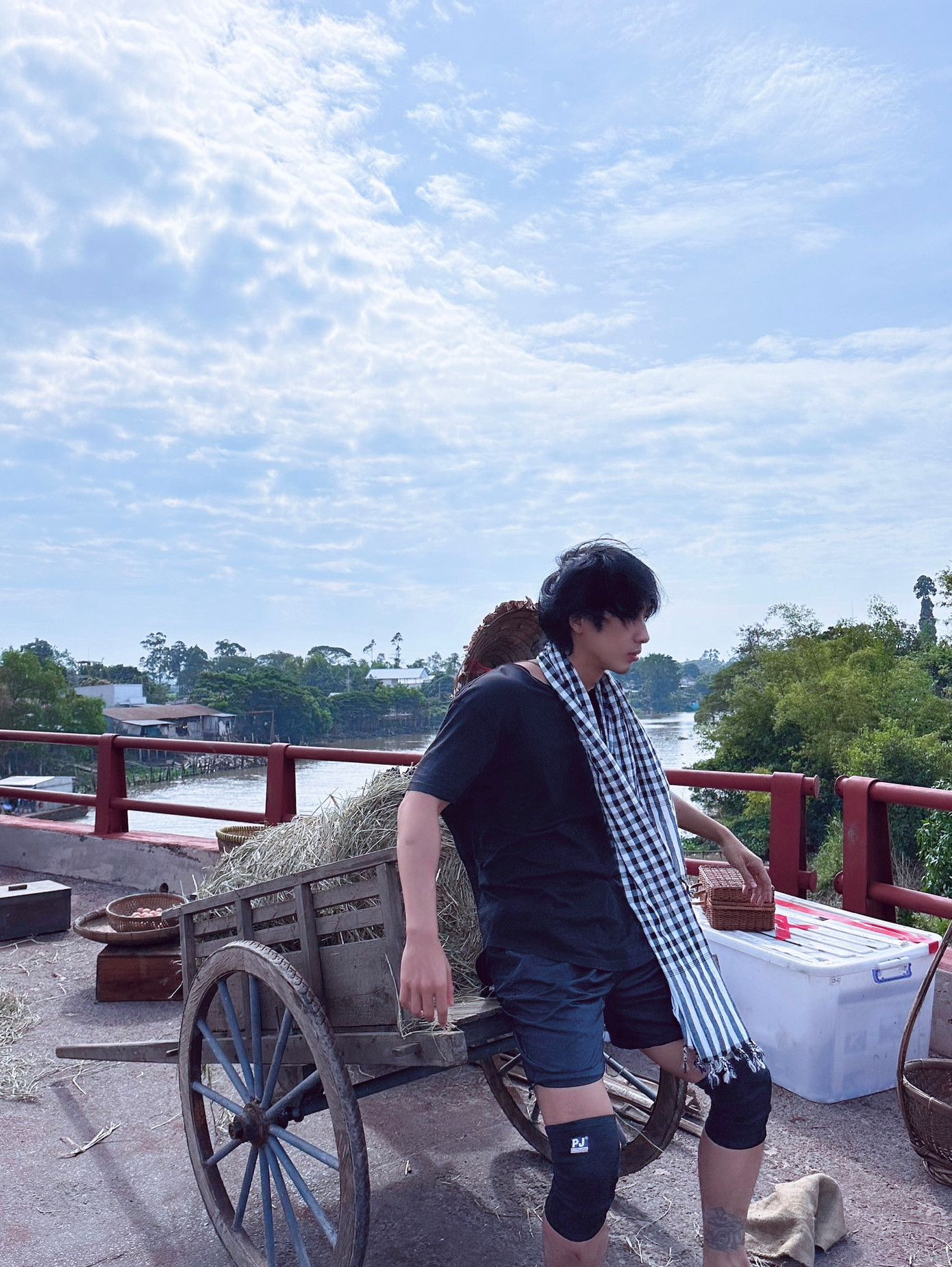 Để đạt được các cảnh quay trên tốt nhất, Tuấn Trần chủ động làm quen với những “bạn diễn bốn chân” của mình. Trên trang cá nhân, nam diễn viên cũng gây bất ngờ khi hé lộ loạt ảnh chăn trâu thành thạo và nhuần nhuyễn như một người dân miền Tây thực thụ.