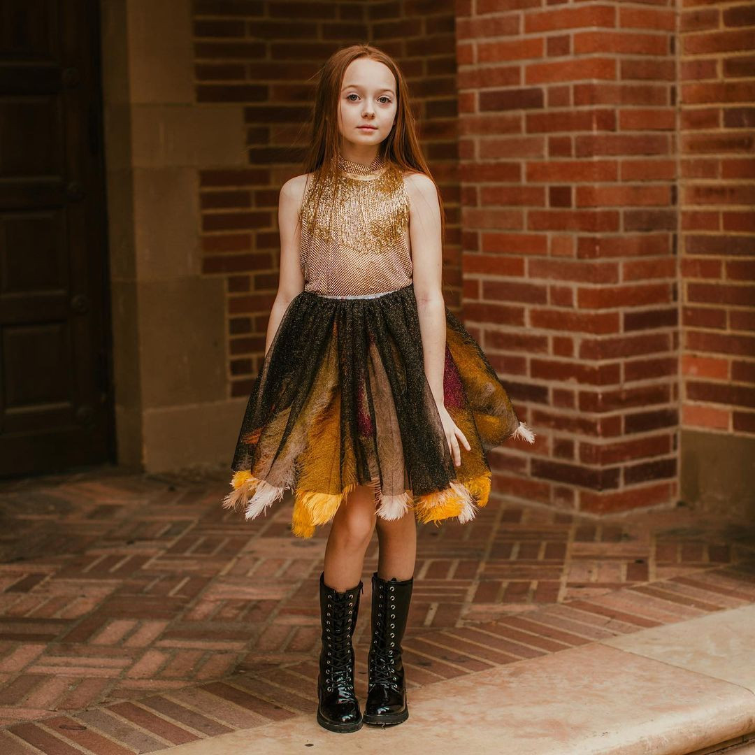 | Các thiết kế lấy cảm hứng từ những khu vườn nhiệt đới trong BST đầu tay của nhà thiết kế nhí. |
