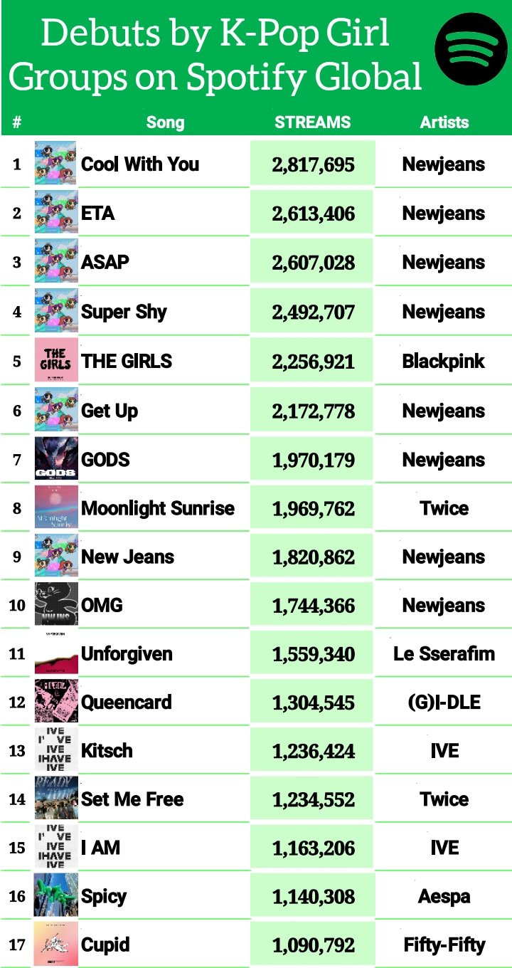 Bỏ qua tranh cãi, với sức ảnh hưởng của NewJeans, GODS đang có lượt stream khá tốt khi vượt 1,97 triệu lượt ngày đầu, ra mắt ở hạng 41 trên bảng xếp hạng Spotify Global Chart, cao thứ 7 trong các bài hát của girl group K-Pop phát hành năm nay.