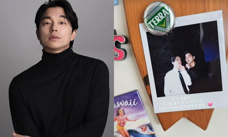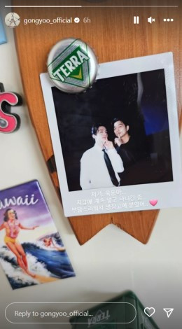 Nam diễn viên Gong Yoo vừa chia sẻ vào ngày hôm nay: Này, Dong Wook... giữ nó trong ví hơi nặng nên tôi đã nhét nó lên hết tủ lạnh.. kèm theo bức ảnh chụp lại tấm polaroid Gong Yoo chụp cùng bạn thân, nam diễn viên Lee Dong Wook được gắn trên tủ lạnh ở nhà.