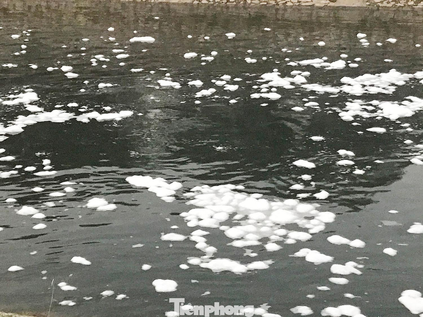 Trên mặt kênh dẫn nước Yên Sở xuất hiện dày đặc các tảng bọt màu trắng. Ảnh: Trường Phong