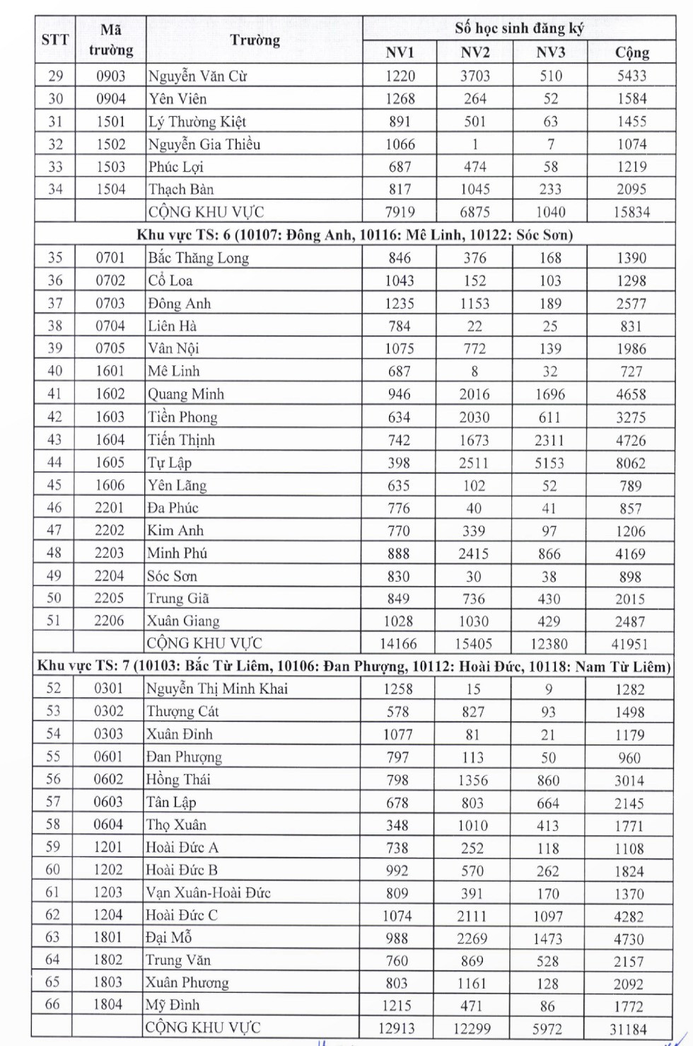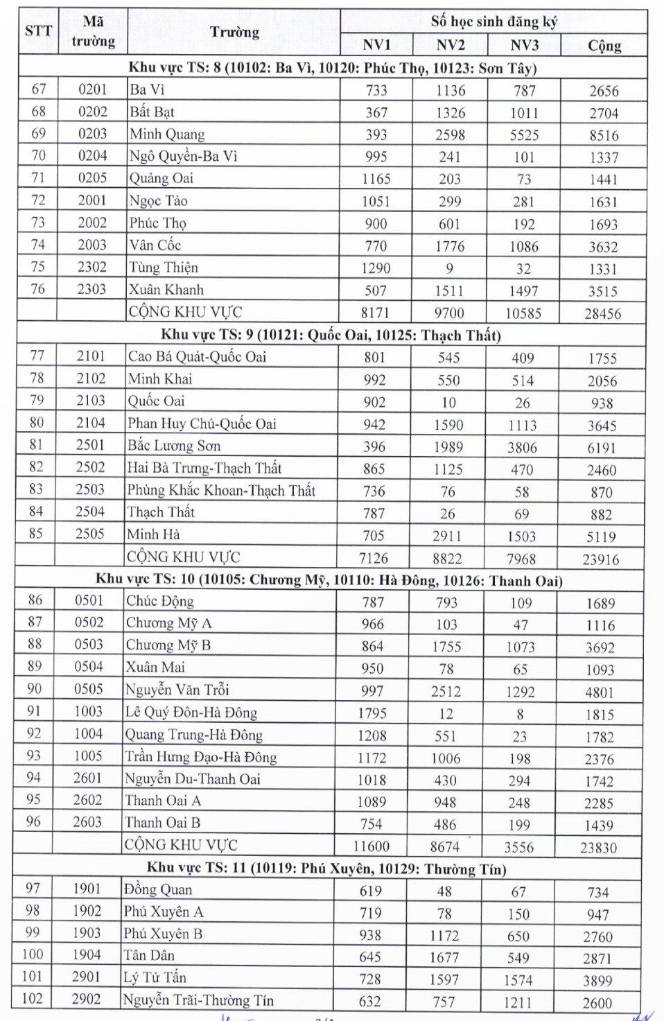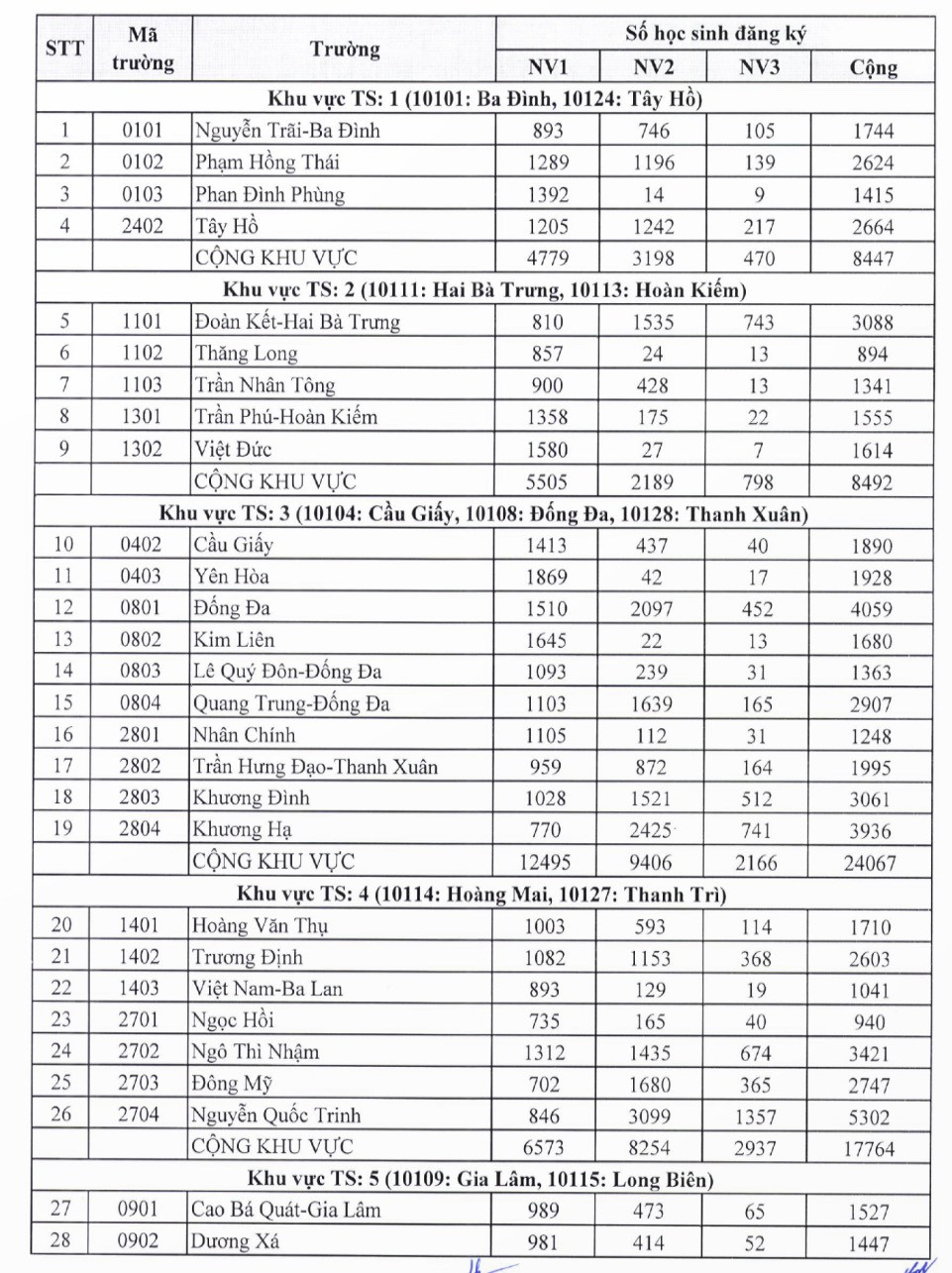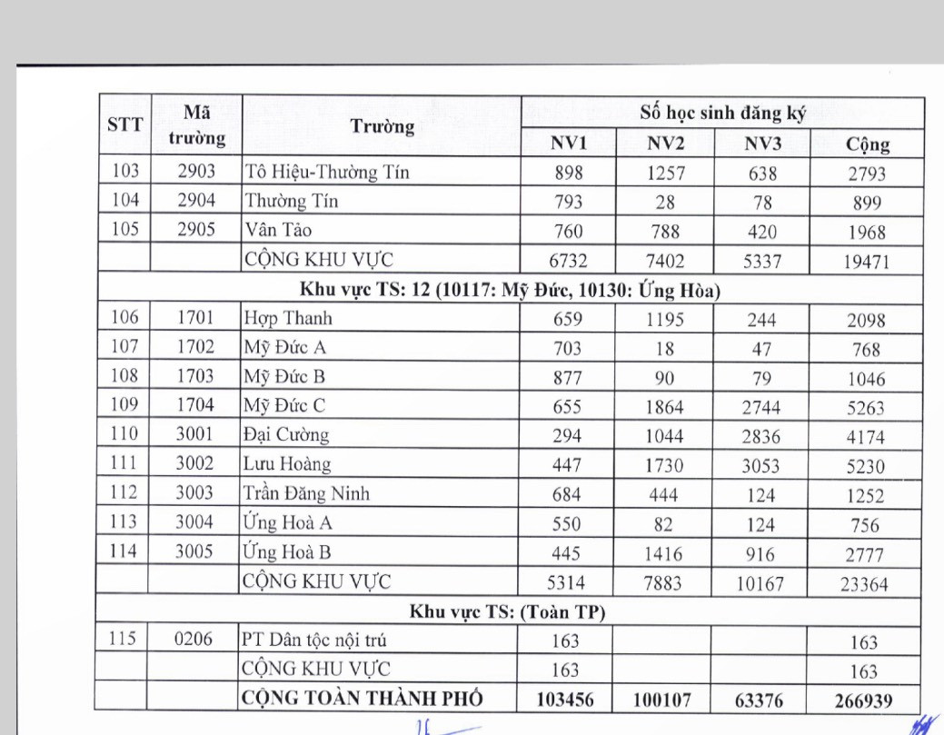 Số lượng học sinh đăng ký dự tuyển vào lớp 10 các trường THPT công lập như sau: