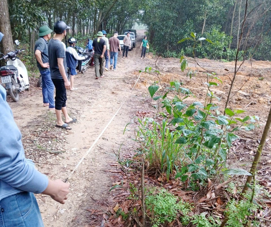 | Đại diện UBND xã Cẩm Lĩnh đã đến kiểm tra, ghi nhận, đo đạc, sau đó làm biên bản hiện trường. |
