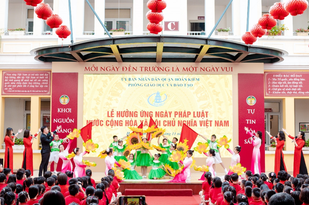HHTO - Sáng 6/11, trường Tiểu học Tràng An (Hà Nội) đã tổ chức chương trình Lễ “Hưởng ứng ngày Pháp luật nước Cộng hòa xã hội Chủ nghĩa Việt Nam” năm 2023. Chương trình được tổ chức sôi động vui vẻ, giúp các bạn học sinh có thêm nhiều kiến thức về pháp luật.