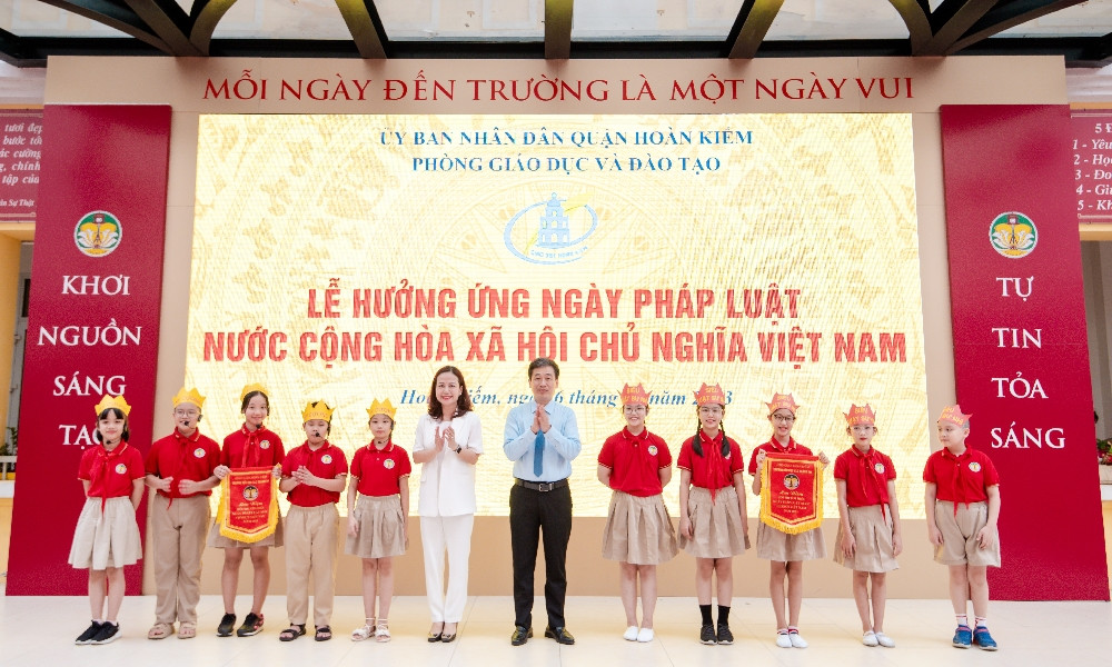 Phát biểu tại lễ hưởng ứng, bà Phan Thị Kim Ngân - Phó Trưởng phòng GD&ĐT quận Hoàn Kiếm đã nêu cao tầm quan trọng của ý thức chấp hành nghiêm chỉnh Hiến pháp, pháp luật Việt Nam đối với ngành Giáo dục và Đào tạo, biểu dương tinh thần của các tập thể nhà trường của quận Hoàn Kiếm nói chung, trường Tiểu học Tràng An nói riêng trong công tác tuyên truyền phổ biến kiến thức pháp luật đối với học sinh tại cơ sở giáo dục.