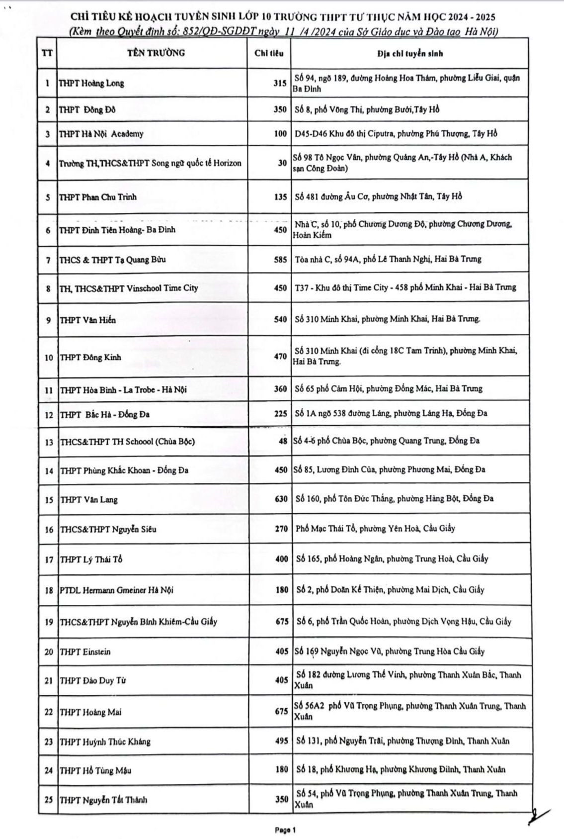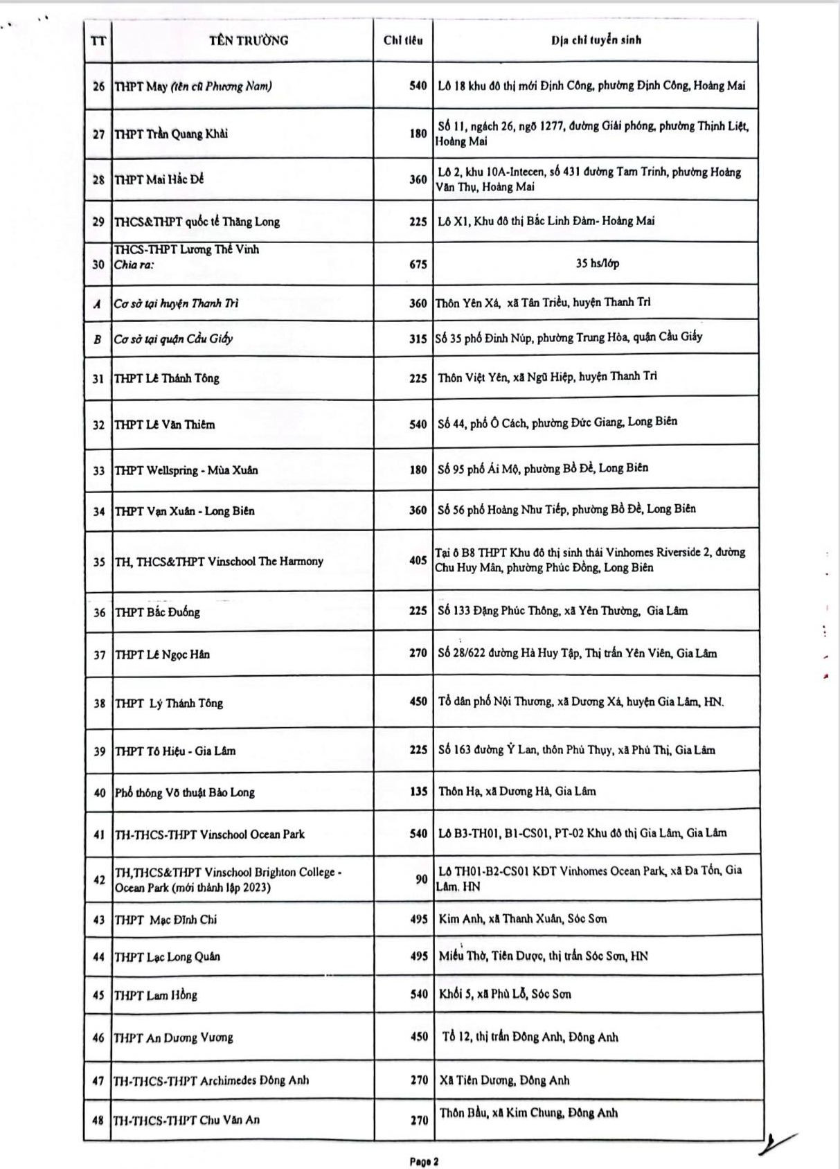 Danh sách 85 trường được Sở GD&ĐT Hà Nội giao chỉ tiêu tuyển sinh lớp 10 năm học tới như sau:
