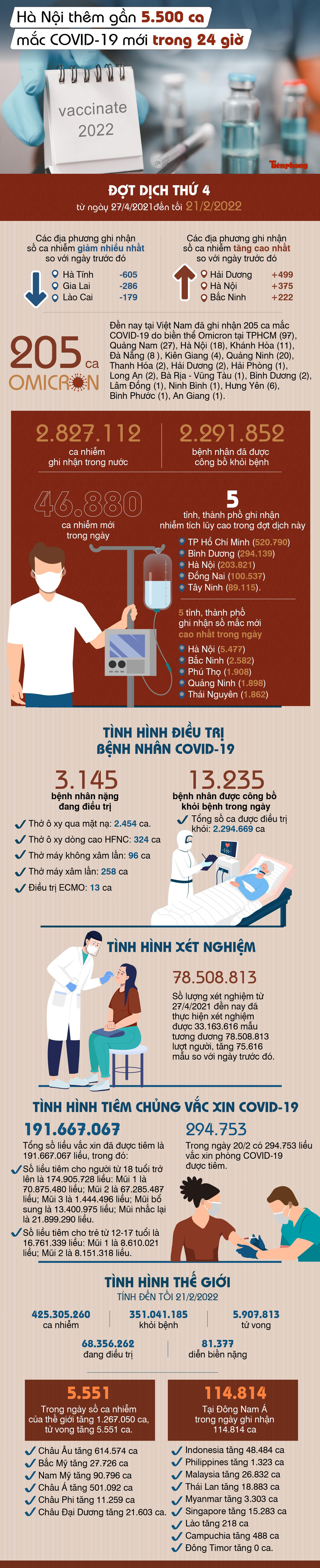 TPO - Kể từ đầu dịch đến nay Việt Nam có 2.834.373 ca nhiễm, đứng thứ 32/225 quốc gia và vùng lãnh thổ, trong khi với tỷ lệ số ca nhiễm/1 triệu dân, Việt Nam đứng thứ 144/225quốc gia và vùng lãnh thổ (bình quân cứ 1 triệu người có 28.696 ca nhiễm).