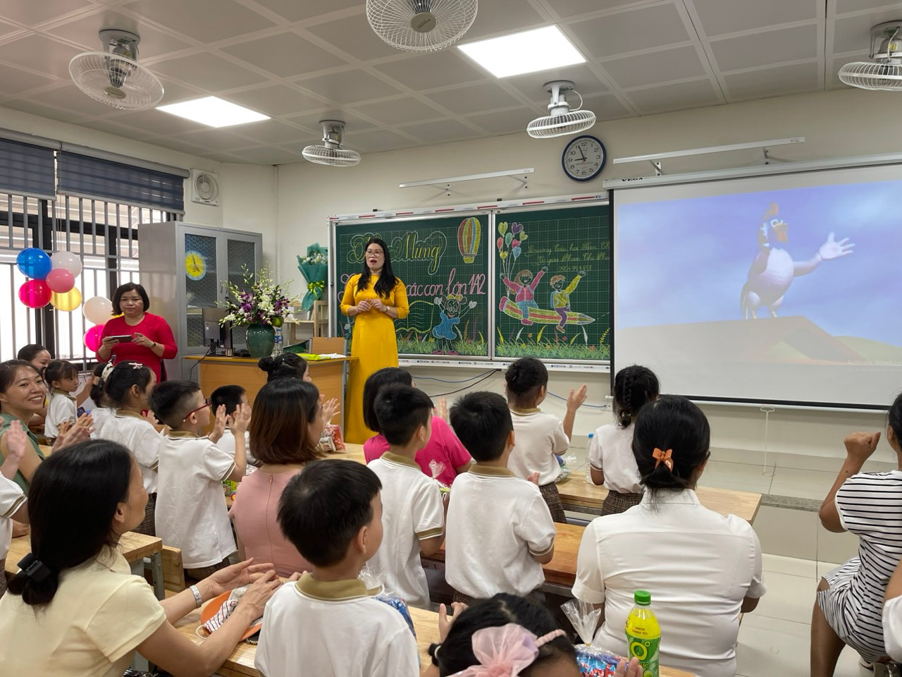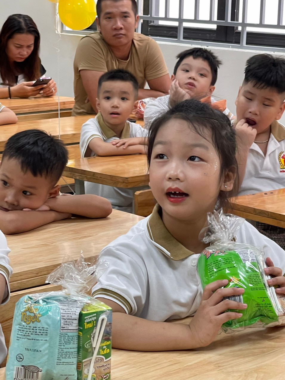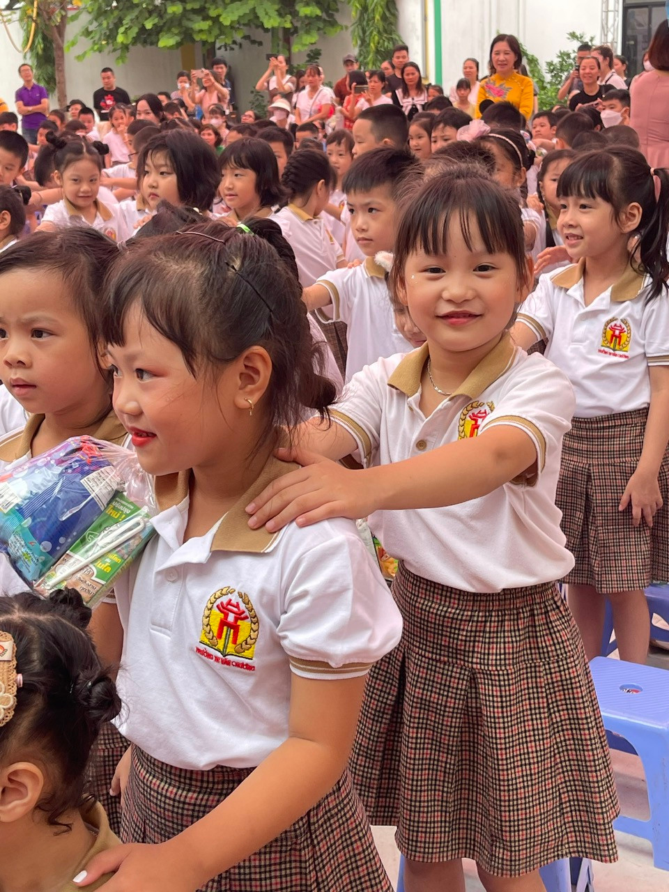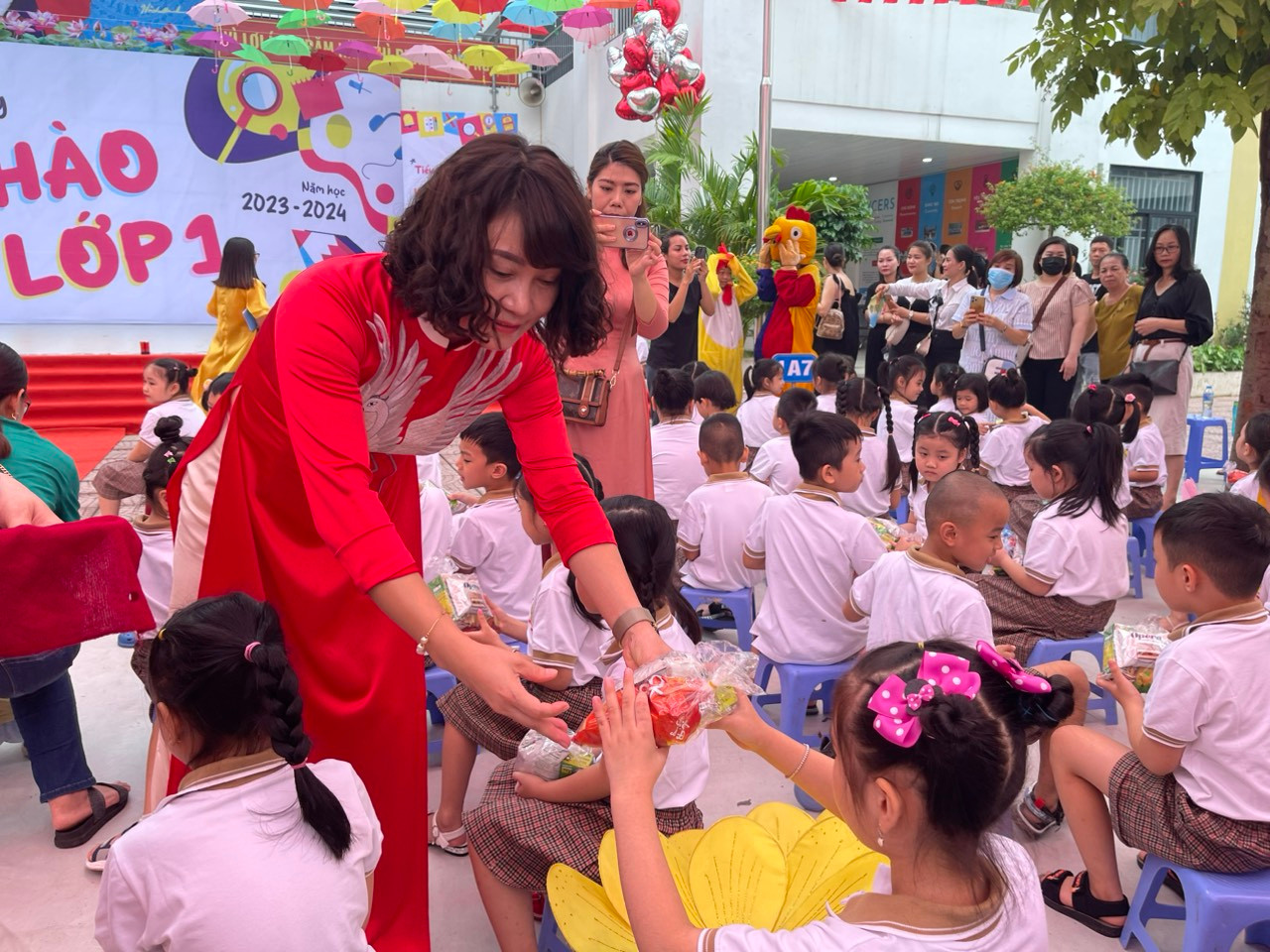Tween thích thú với các phần quà nhận được, cũng mê mẩn các tiết mục văn nghệ từ nhà trường. Sân khấu Yêu lắm lớp 1 ơi của các cô giáo lớp 1 cùng các chị “tiền bối” lớp 4, 5, đặc biệt là có sự tham gia của các “chú gà” làm cho không gian sân trường càng thêm tưng bừng và sôi động.