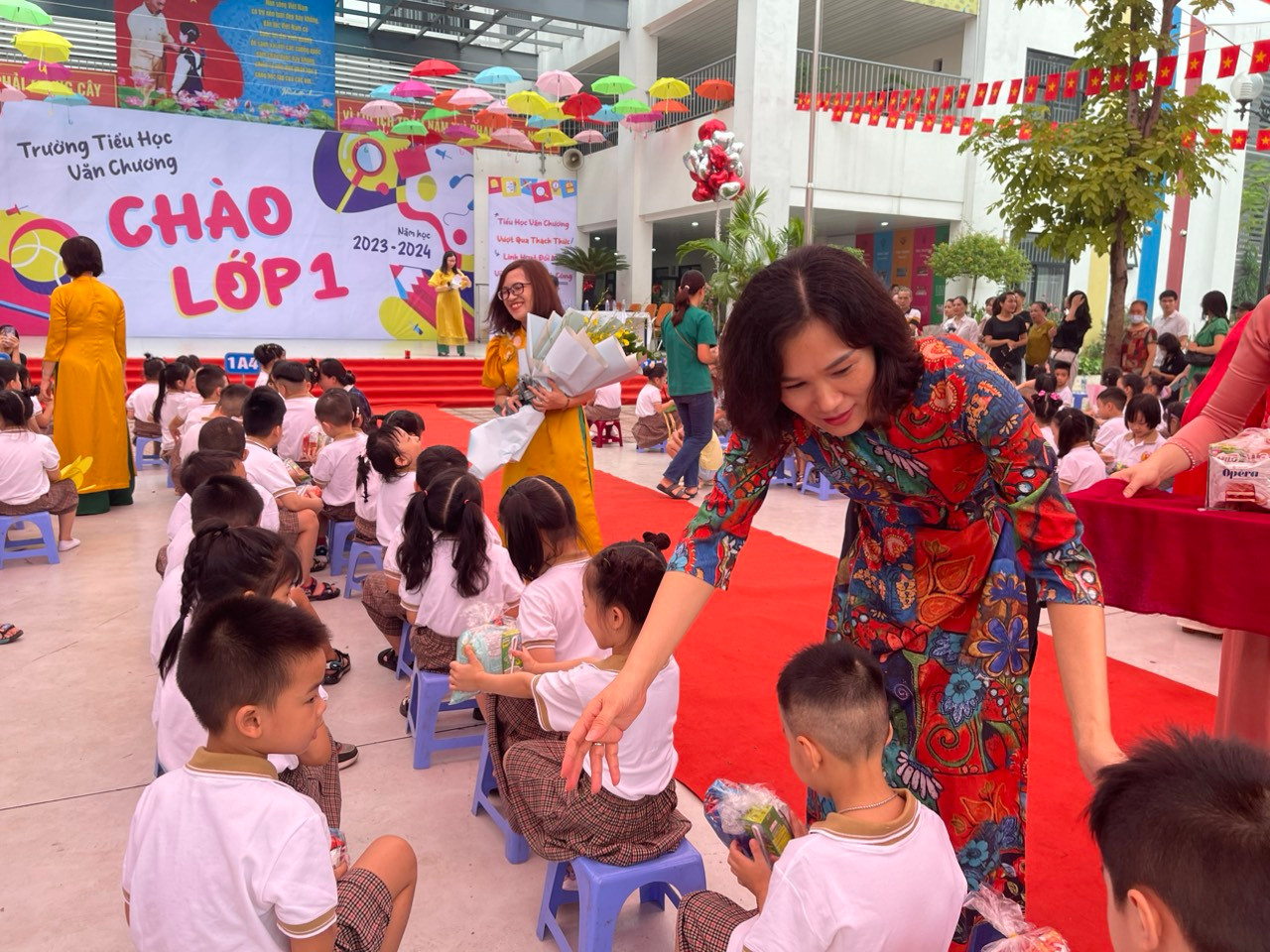 Trường Tiểu học Văn Chương vừa tổ chức lễ đón học sinh lớp 1 trong không khí không thể náo nhiệt hơn. Không chỉ các thành viên mới của trường có mặt đông đủ, mà phụ huynh cũng tề tựu khiến không khí thêm ấm áp, nhộn nhịp.