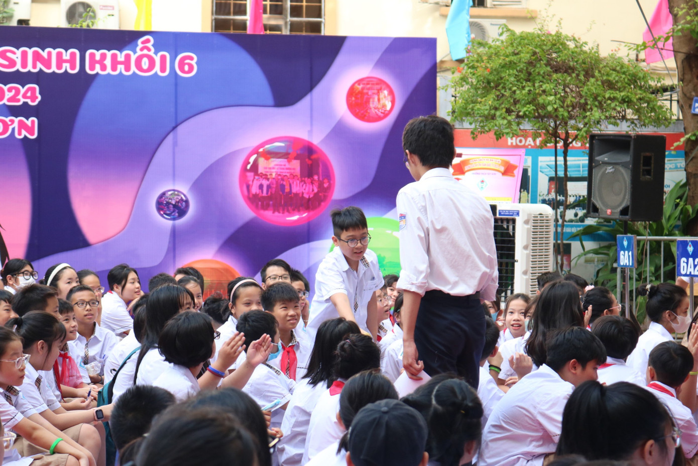 Mini game tới từ câu lạc bộ Mỹ thuật của trường (AOTS - Art Of Tay Son) được các bạn học sinh lớp 6 hưởng ứng nồng nhiệt bằng cả rừng cánh tay giơ lên, ai cũng muốn trả lời câu hỏi.