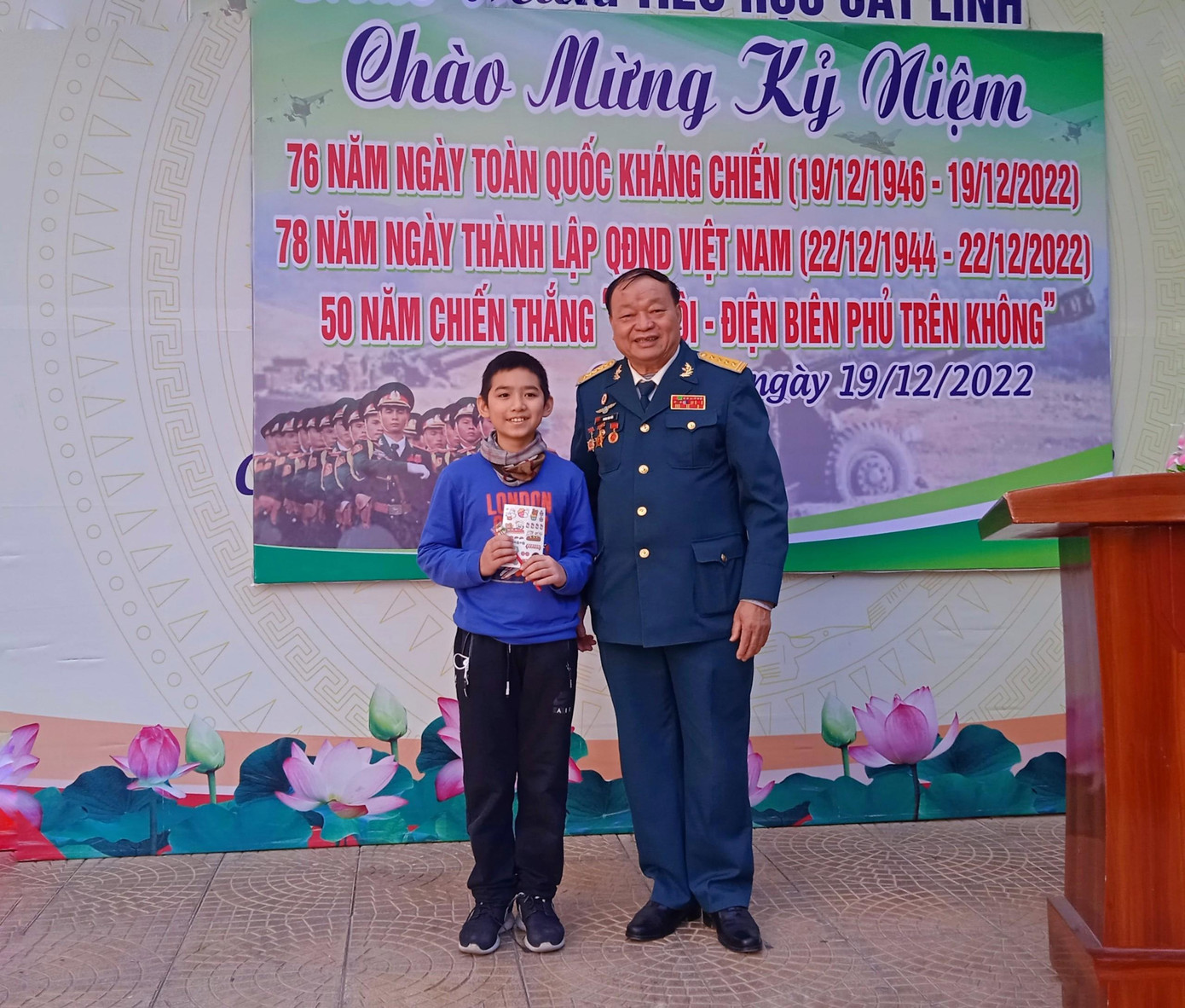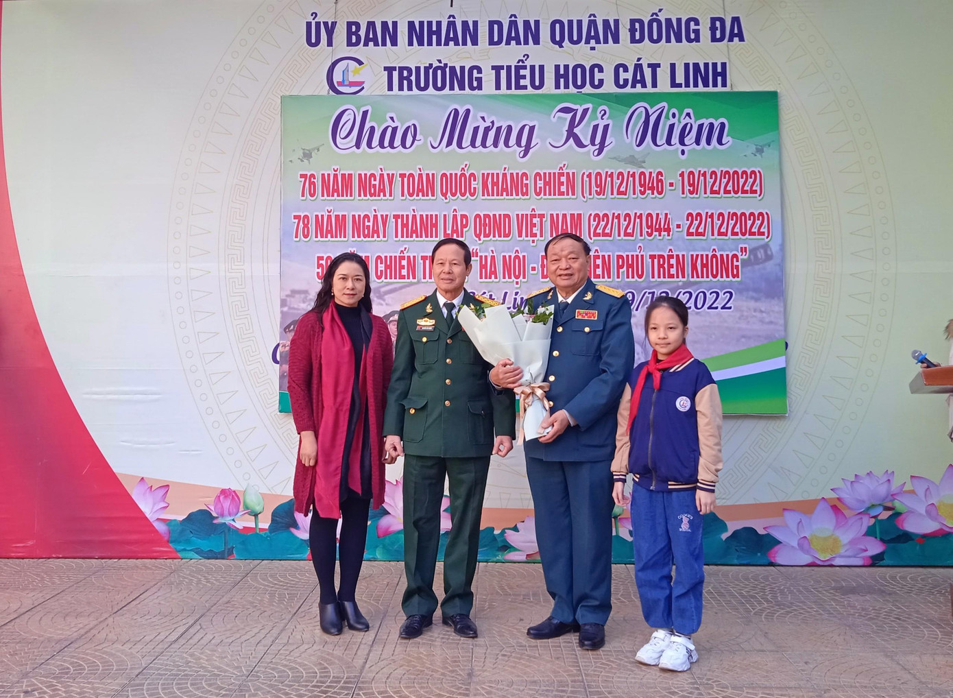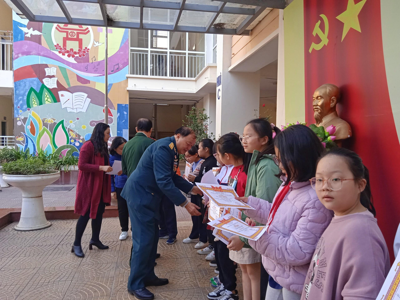 Đại tá - Phó Chủ tịch Hội Cựu chiến binh quận Đống Đa (Hà Nội) Hoàng Văn Tiến và Đại tá Nguyễn Văn Động - Chủ tịch Hội Cựu chiến binh phường Cát Linh (Hà Nội) là 2 khách mời đặc biệt đến trò chuyện cùng thầy trò trường Tiểu học Cát Linh. Trước khi bắt đầu cuộc trò chuyện, 2 vị Đại tá đã cùng cô Hiệu trưởng và Hiệu phó của trường trao thưởng cho 50 bạn học sinh đạt giải trong cuộc thi vẽ hưởng ứng chương trình Xuân biên giới - Tết hải đảo năm 2023.