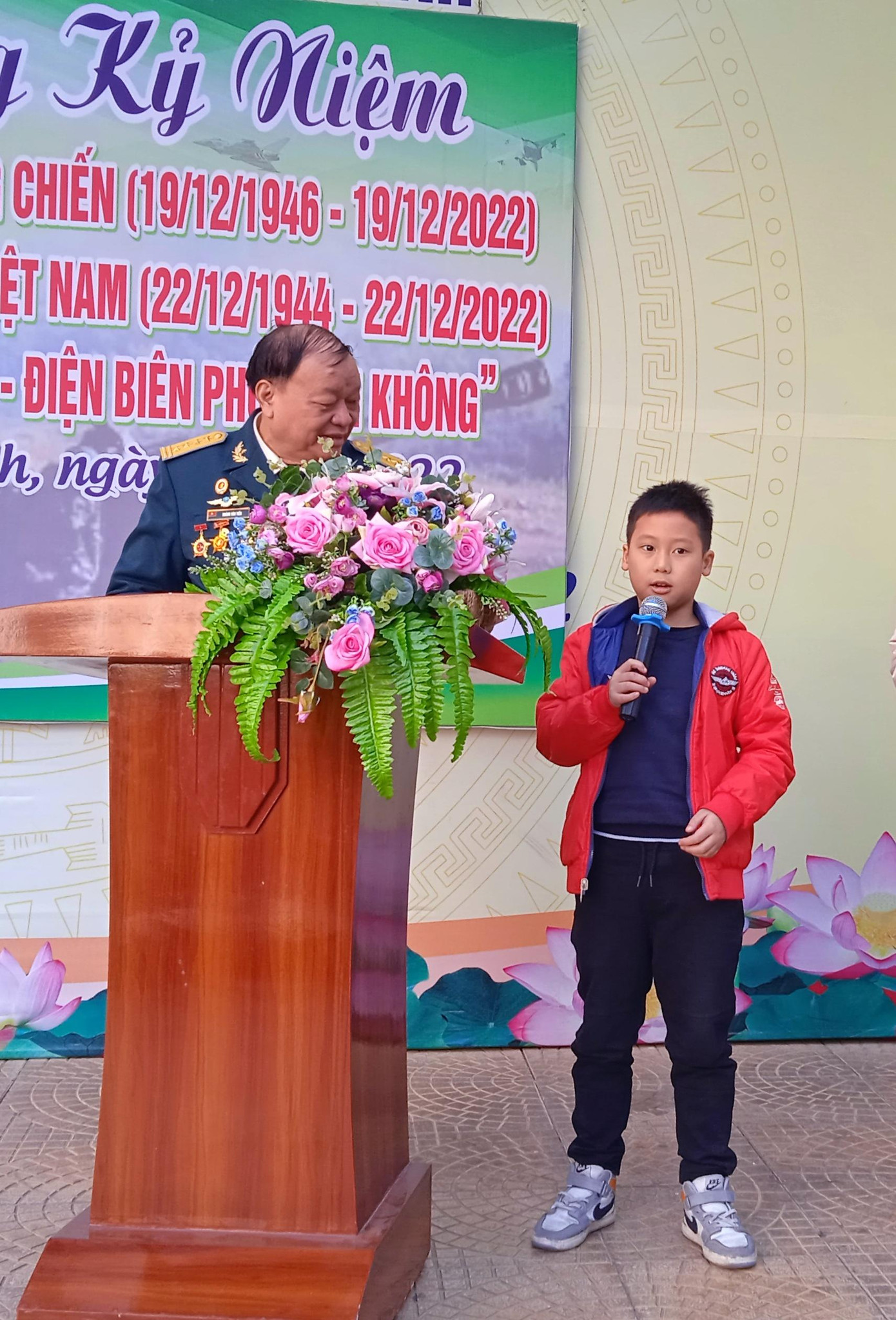 Trận chiến Điện Biên Phủ trên không được Đại tá - phi công Hoàng Văn Tiến kể lại ngắn gọn cho tween Tiểu học Cát Linh trong buổi lễ. Từng chi tiết trong câu chuyện của Đại tá được các bạn học sinh chú tâm lắng nghe. Khép lại buổi giao lưu, một phần hỏi đáp có thưởng nhỏ đã diễn ra, được tween nhiệt tình hưởng ứng.
