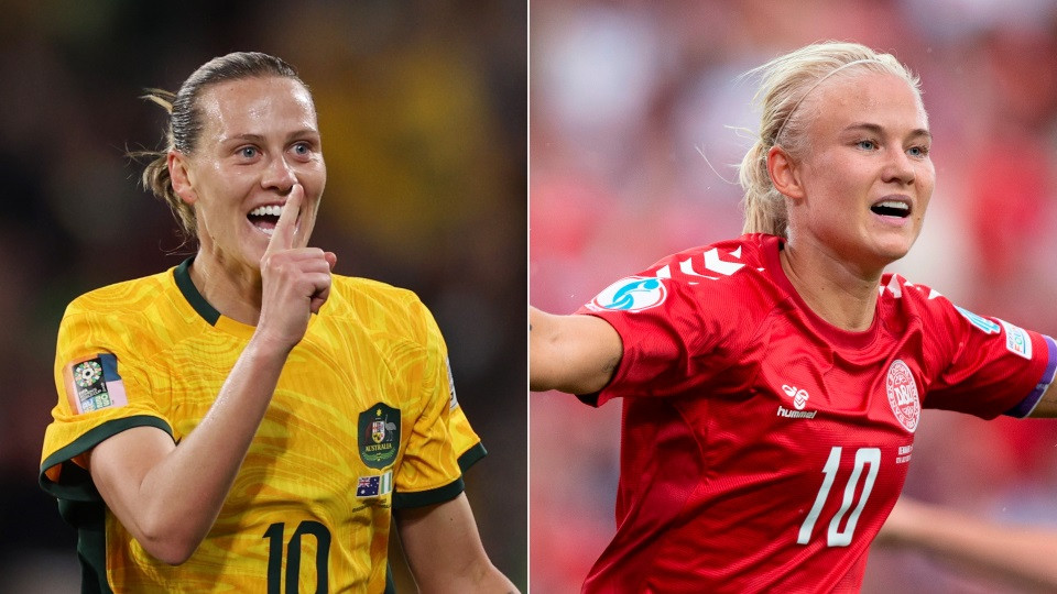 37': Từ cánh trái, Caitlin Foord đi bóng đẹp mắt trước khi dứt điểm. Bóng đập chân hậu vệ Đan Mạch đổi hướng, đi chệch cột dọc trong gang tấc.