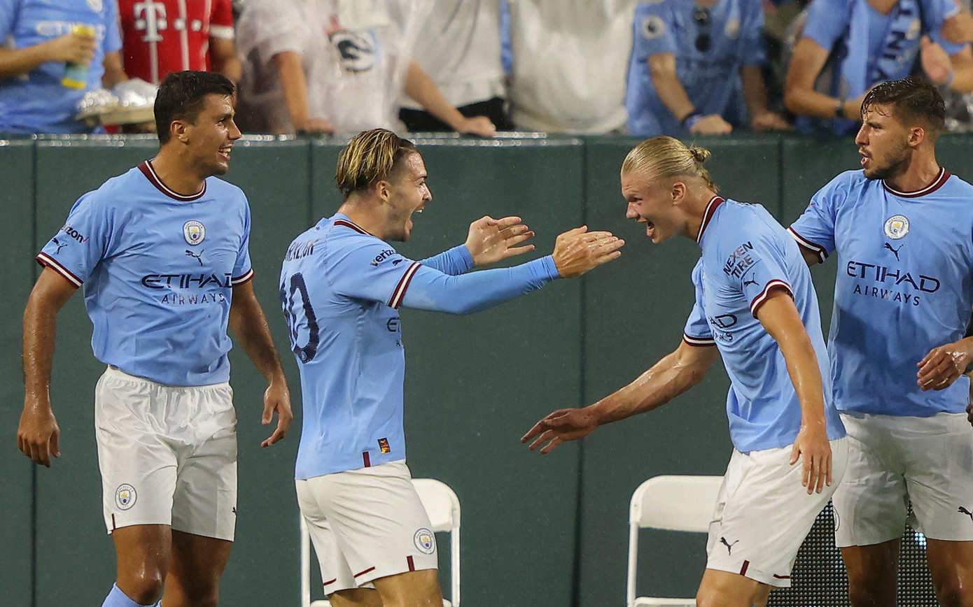 Đến phút 12, siêu tiền đạo Haaland mở tỷ số cho Man City từ đường kiến tạo của Jack Grealish. Ngay sau bàn thắng này, trời đổ mưa to và sấm chớp khiến trận đấu phải bị hoãn gần 45 phút. Nhiều trận đấu giao hữu diễn ra trên đất Mỹ cũng phải bị hoãn do ảnh hưởng của bão.
