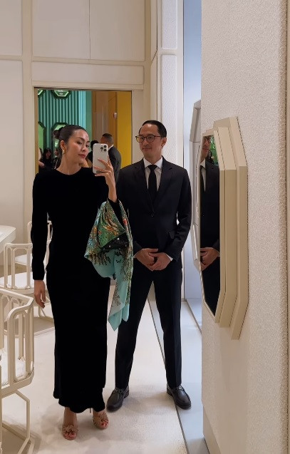 Kể cả khi đi du lịch hay đi sự kiện, hai vợ chồng ngọc nữ màn ảnh Việt đều chuộng màu đen và ai cũng phải công nhận Tăng Thanh Hà nhìn càng sang trọng với style "giàu ngầm" như thế này.