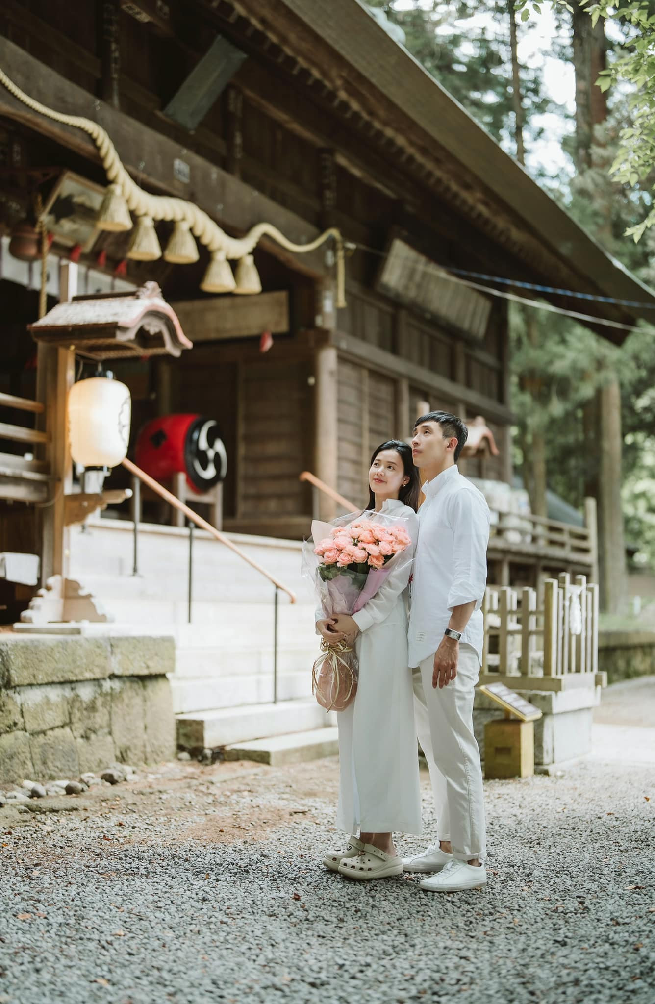 Có thể thấy Midu và ông xã rất chuộng màu trắng, thường xuyên diện đồ cùng tông trắng như một cách thể hiện tình cảm. Từ bộ ảnh chụp khi du lịch ở ngôi làng cổ đến đi tuần trăng mật hoặc ra sân bay thì hai vợ chồng Midu đều chọn trang phục trắng đồng điệu.