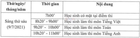 Thời gian làm bài 3 môn Tiếng Việt, Toán, Tiếng Anh là 120 phút (40 phút/môn).