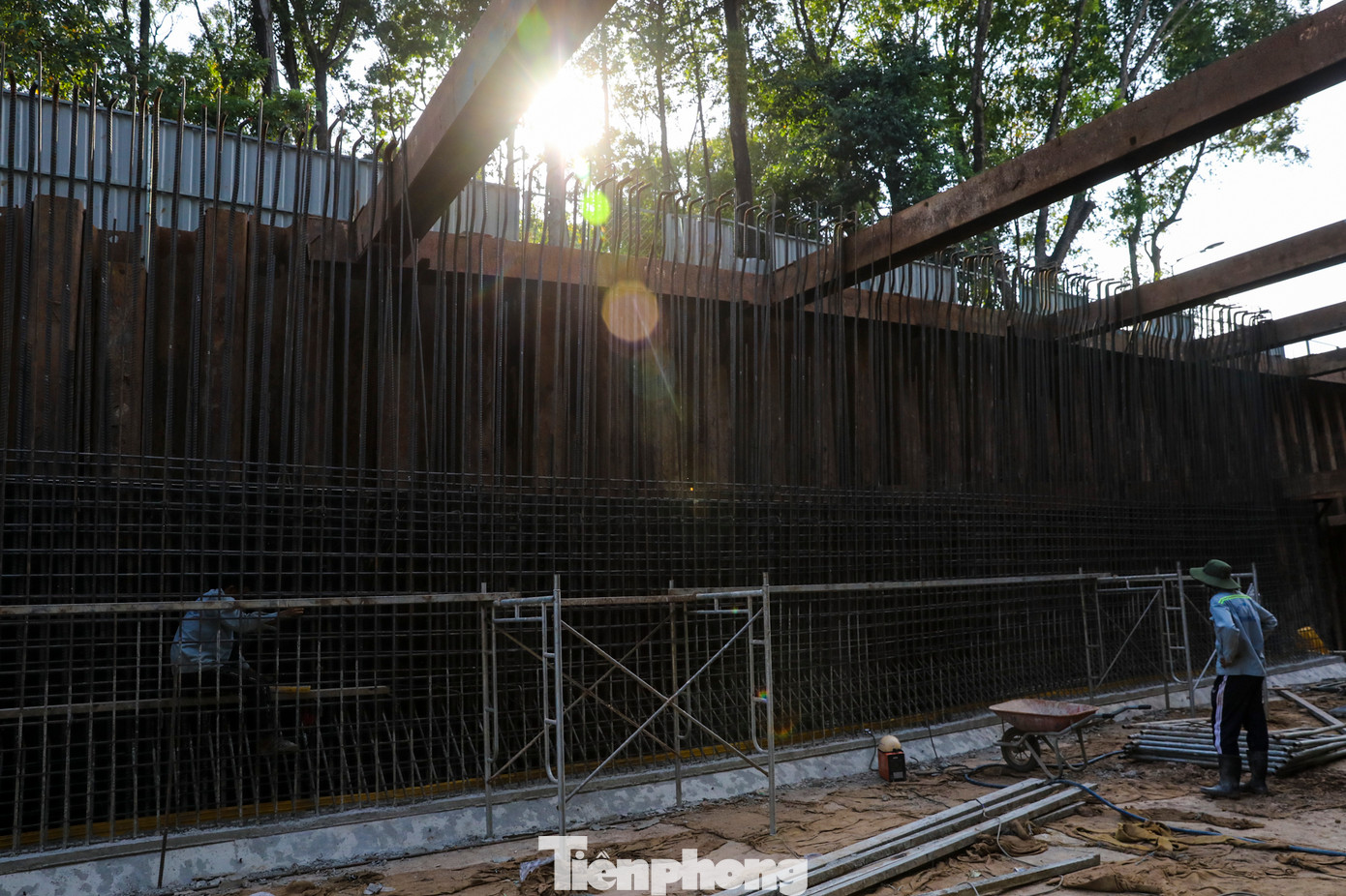 | Bên dưới hầm chui Trần Quốc Hoàn - Phan Thúc Duyện, kết cấu đà chống vách đã hoàn thiện. |