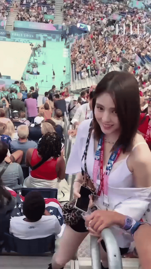 Hạ cánh xuống Pháp, Han So Hee diện trang phục tông màu đen, trắng, make-up nhẹ nhàng, đơn giản đi xem các trận thi đấu Olympic Paris 2024. Sao nữ Nevertheless tích cực giao lưu, chụp hình với người hâm mộ trên khán đài.