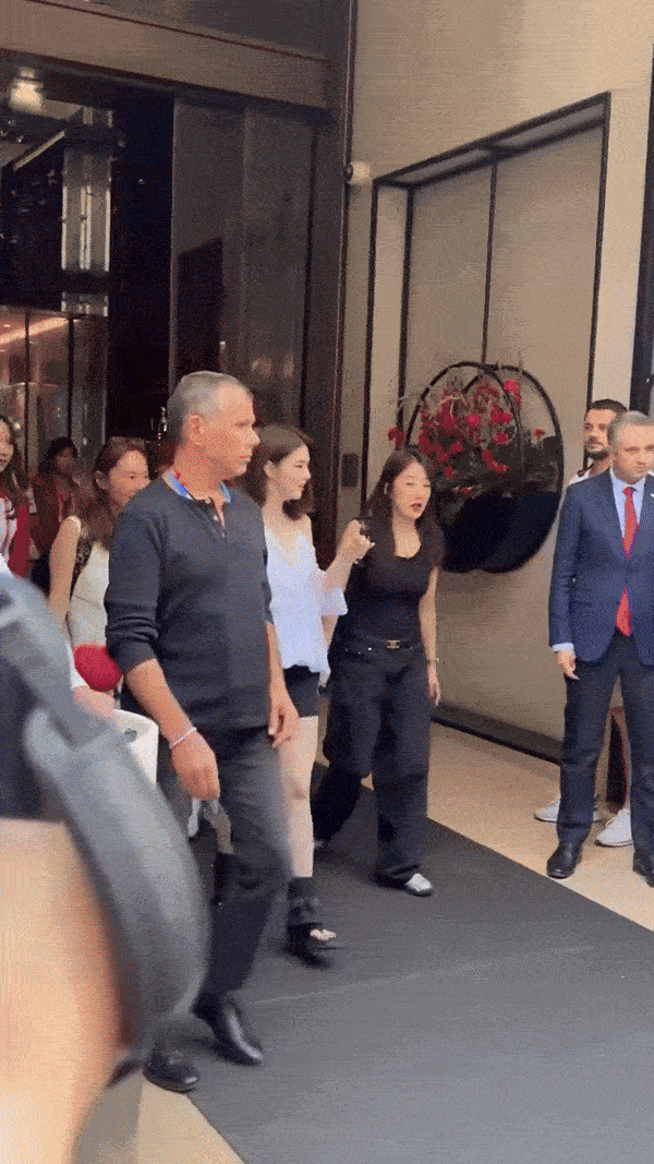 Đầu tháng 8, Han So Hee có chuyến công tác sang Pháp dự Olympic Paris 2024 theo lời mời từ hãng trang sức đồng hồ cao cấp OMEGA. Tại sân bay khởi hàng sang Pháp, Han So Hee gây trầm trồ nhờ kiểu tóc mới được cắt ngắn ngang vai, uốn cụp. Sao nữ Thế Giới Hôn Nhân diện áo trễ vai, chân váy jeans, kết hợp cùng bốt cao cổ và túi xách da cùng tông màu đen. Thiết kế đồng Speedmaster 38 Moonshine Gold có giá 46,400 đô la (khoảng hơn 1,1 tỷ đồng) tô điểm cho tạo hình của của nữ đại sứ thương hiệu.