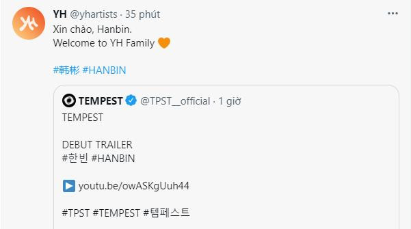 Sau đó không lâu, tài khoản Twitter chính thức của Yuehua Ent cũng chia sẻ đoạn trailer của Hanbin với nội dung bao gồm tiếng Việt: "Xin chào, Hanbin. Welcome to YH Family" (tạm dịch: Xin chào, Hanbin. Chào mừng đến với gia đình của YH).