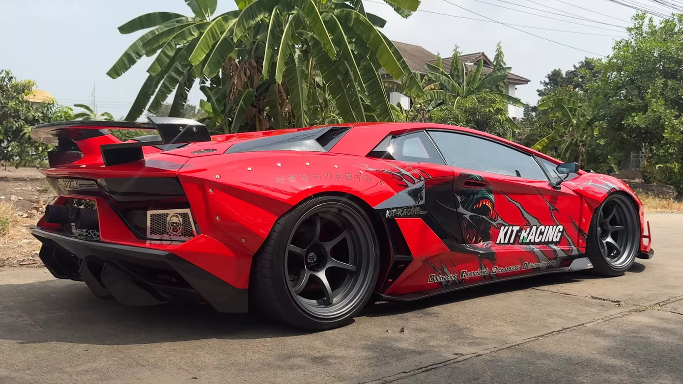 Cụ thể, bản độ "nhái" Lamborghini Aventador SVJ màu đỏ được thực hiện bởi xưởng độ Kit Racing 9999 đến từ Thái Lan. Chiếc xe này rất nổi tiếng tại xứ sở chùa Vàng khi đã thu hút được hàng triệu lượt xem trên nền tảng mạng xã hội Tik Tok.