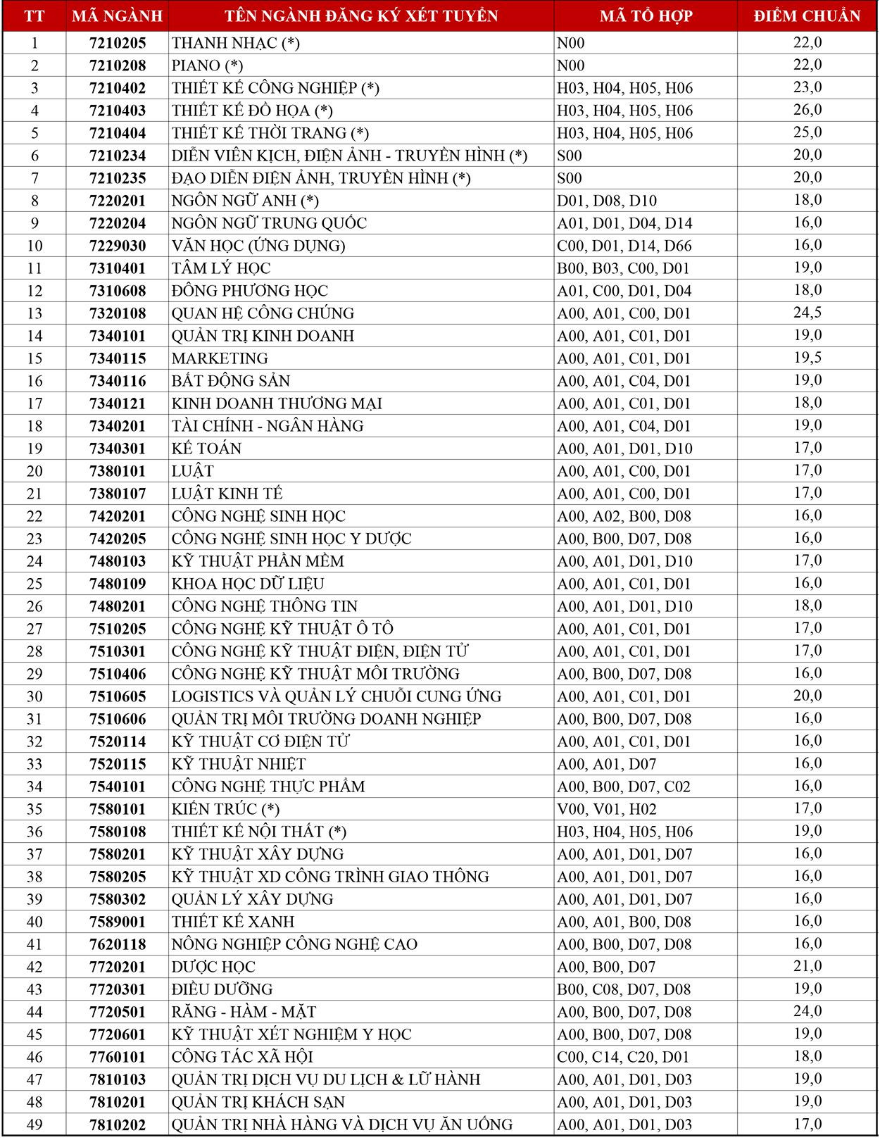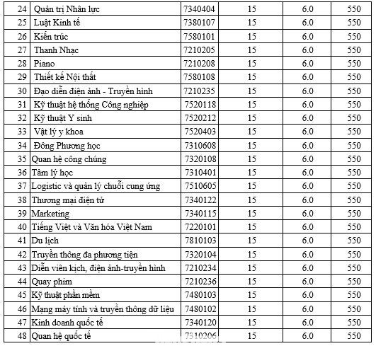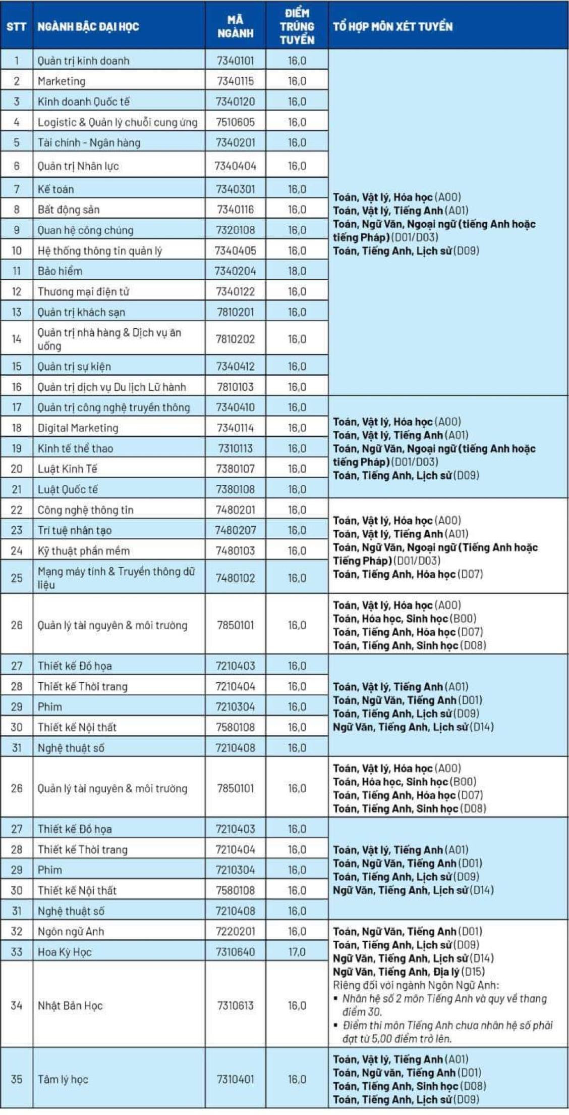 Điểm chuẩn trúng tuyển của ĐH Văn Lang:
