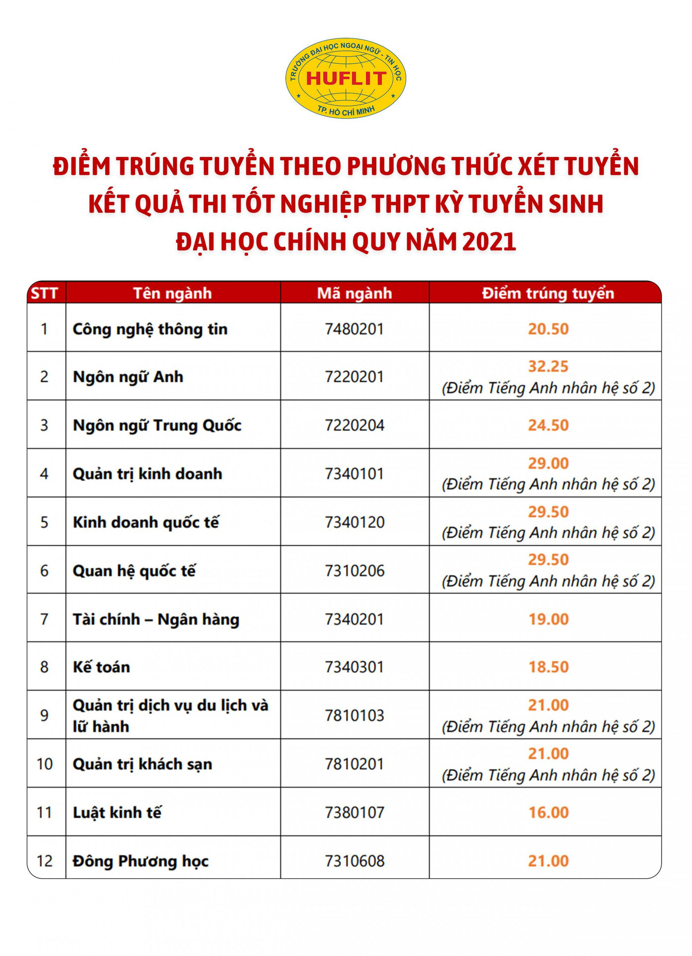 Điểm chuẩn của Trường ĐH Ngoại ngữ Tin học TPHCM: