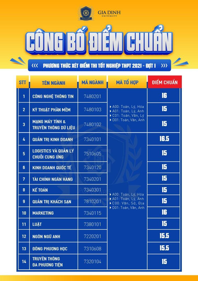 Điểm chuẩn trúng tuyển vào Trường ĐH Gia Định như sau: