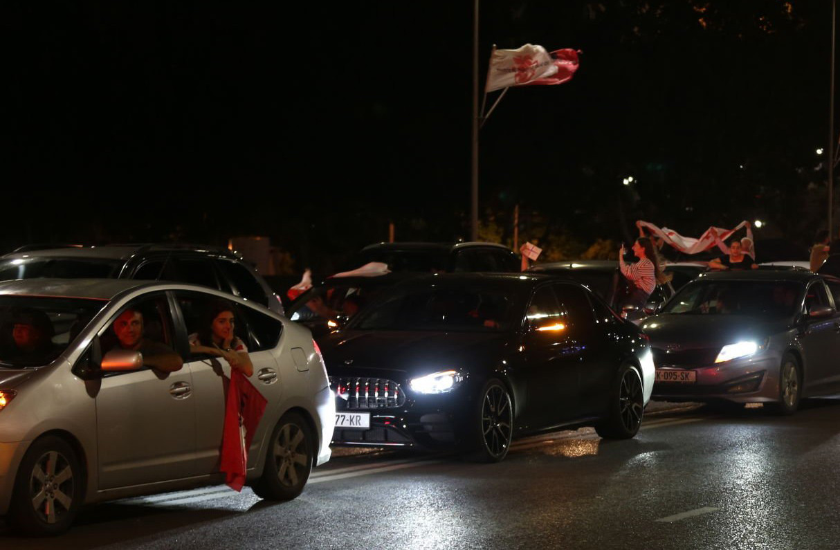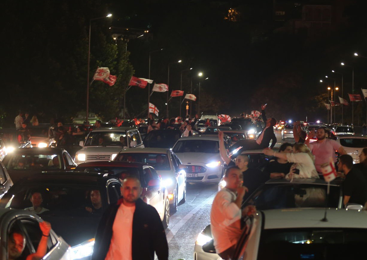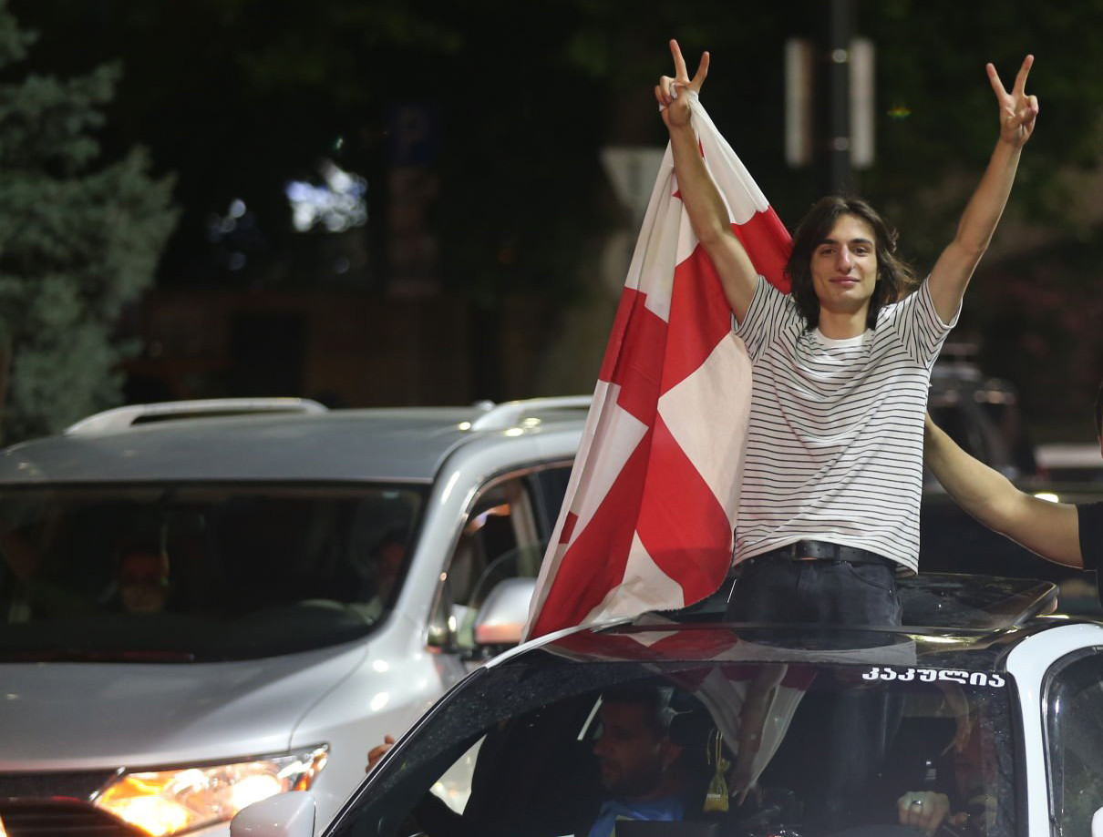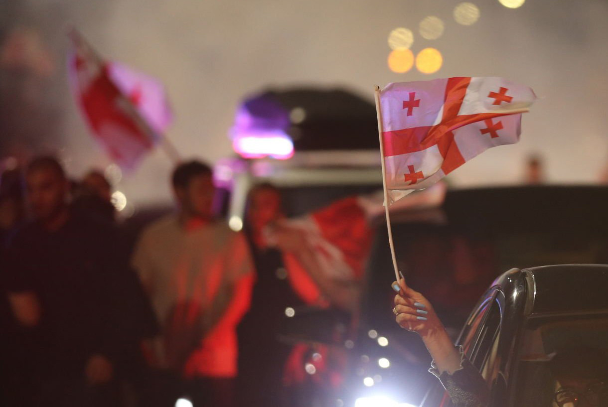 Tại Tbilisi, giữa tiếng còi inh ỏi, người ta có thể nghe thấy mọi người hô vang "Sakartvelo!", từ địa phương chỉ tên đất nước này.