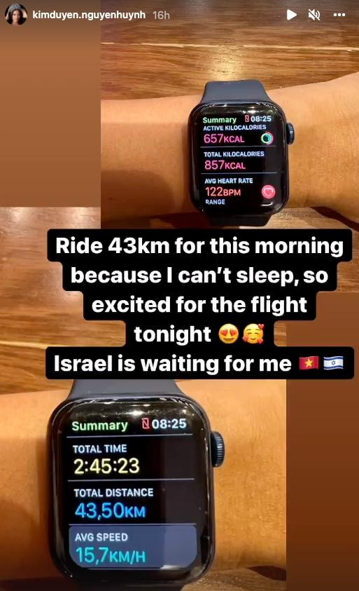 Quá hồi hộp cho chuyến đi, Á hậu Kim Duyên đã dậy từ 4 giờ 30 sáng và thực hiện một cuốc xe đạp dài tới 43km để lên tinh thần cho chính bản thân mình.