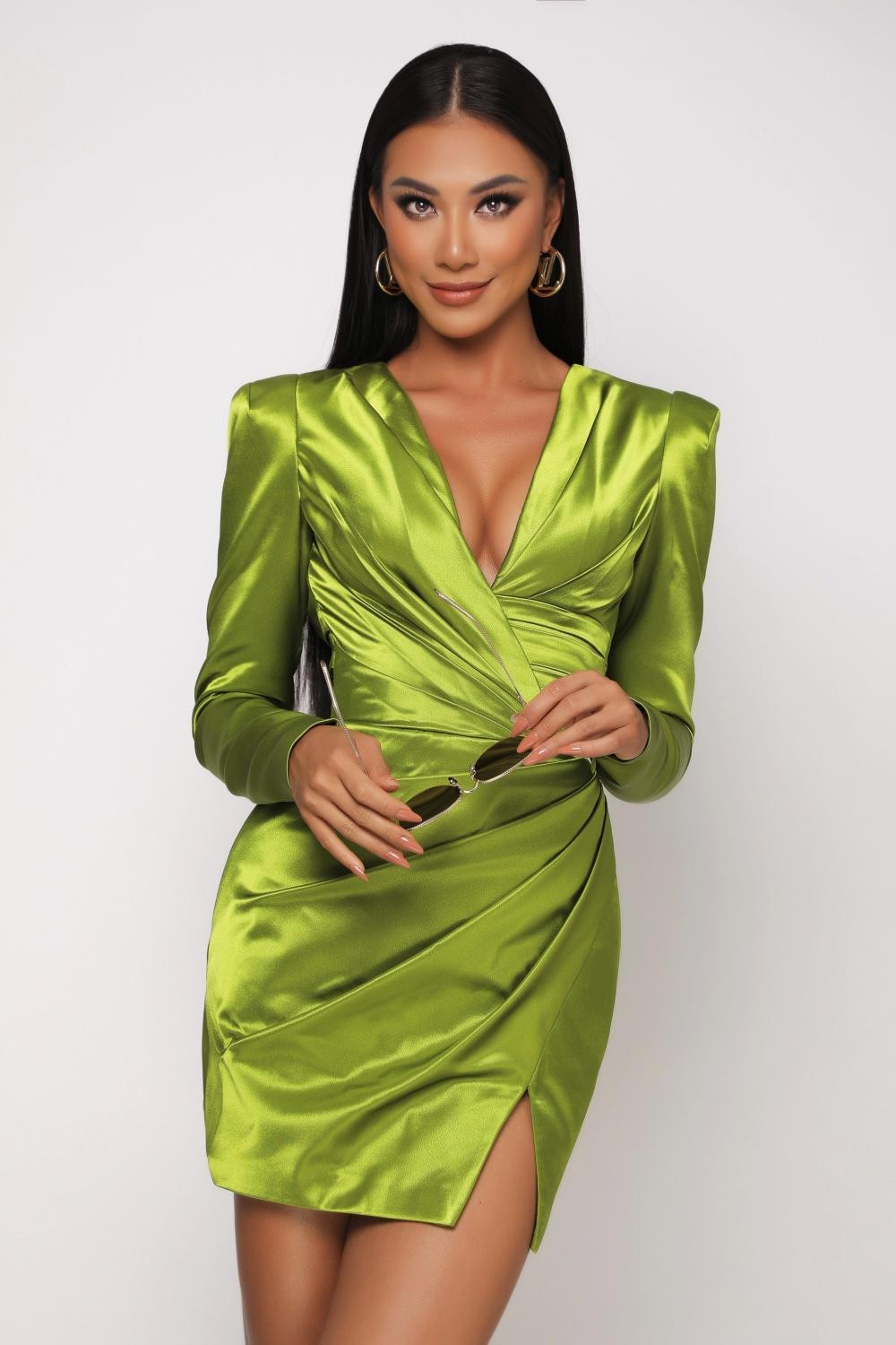 Xuất hiện tại sân bay với thiết kế xanh lá của NTK Chung Thanh Phong, Á hậu Kim Duyên gây ấn tượng với hình thể săn chắc. Loạt vali của cô cũng cùng tông màu với trang phục, thể hiện nguồn năng lượng và sức trẻ, đúng với hình ảnh mà Kim Duyên theo đuổi. Đây cũng là lần đầu tiên Á hậu Kim Duyên xuất hiện cùng với chiếc vương miện được trao tặng trước đó tại buổi công bố đại diện Việt Nam tham gia Miss Universe 2021.