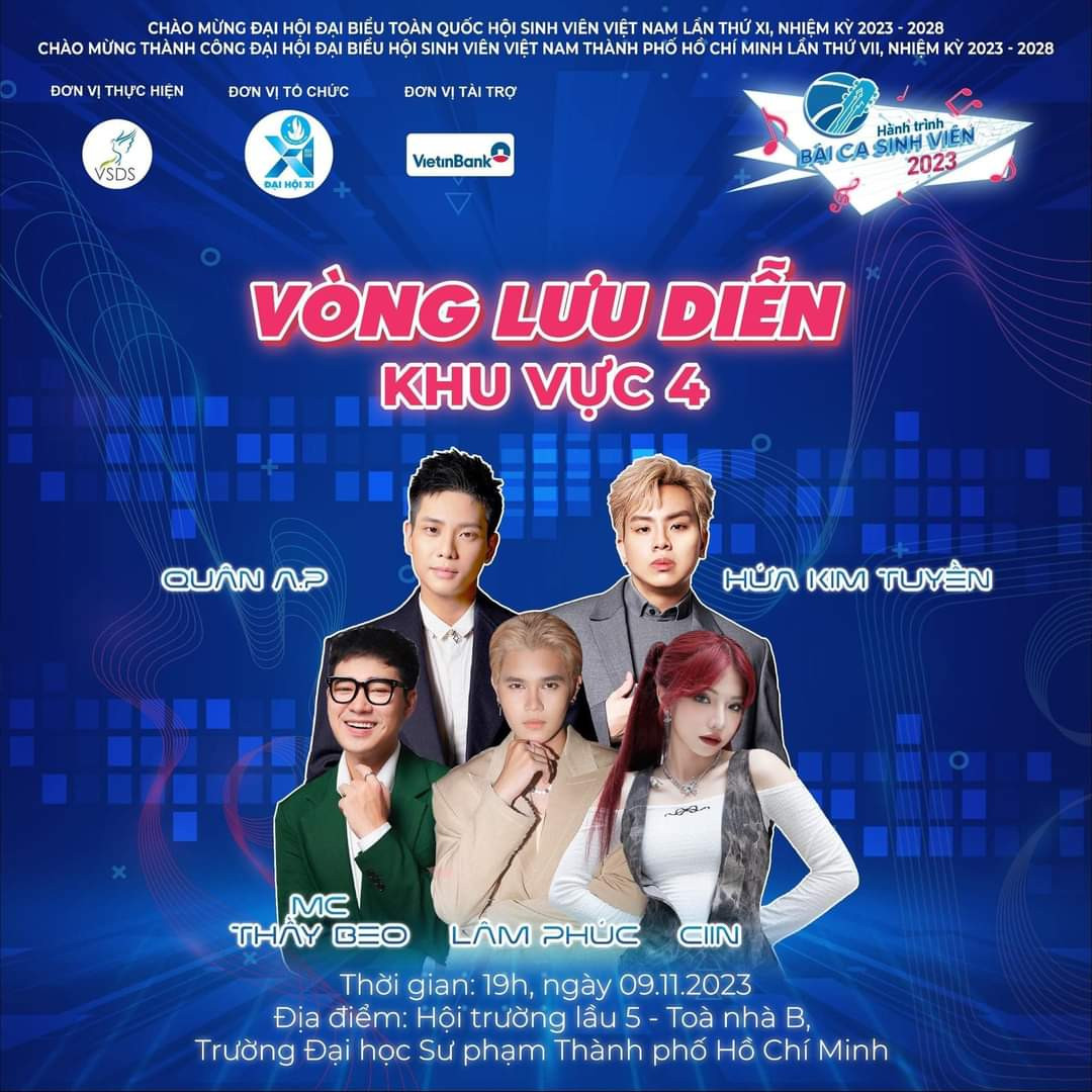 Ngoài dàn khách mời bên dưới, thì vòng lưu diễn khu vực 4 của chương trình có sự tham gia của 10 tiết mục đến từ các cá nhân, nhóm nhạc sinh viên khu vực Đông Nam Bộ, hứa hẹn sẽ mang đến cho các bạn sinh viên một đêm nhạc thật bùng cháy.