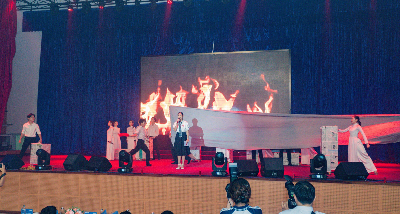 | Tiết mục “Chào 50 năm thành phố rực rỡ mang tên Người” từ CLB Văn hóa Nghệ thuật trường ĐH Sư phạm TP. HCM. |