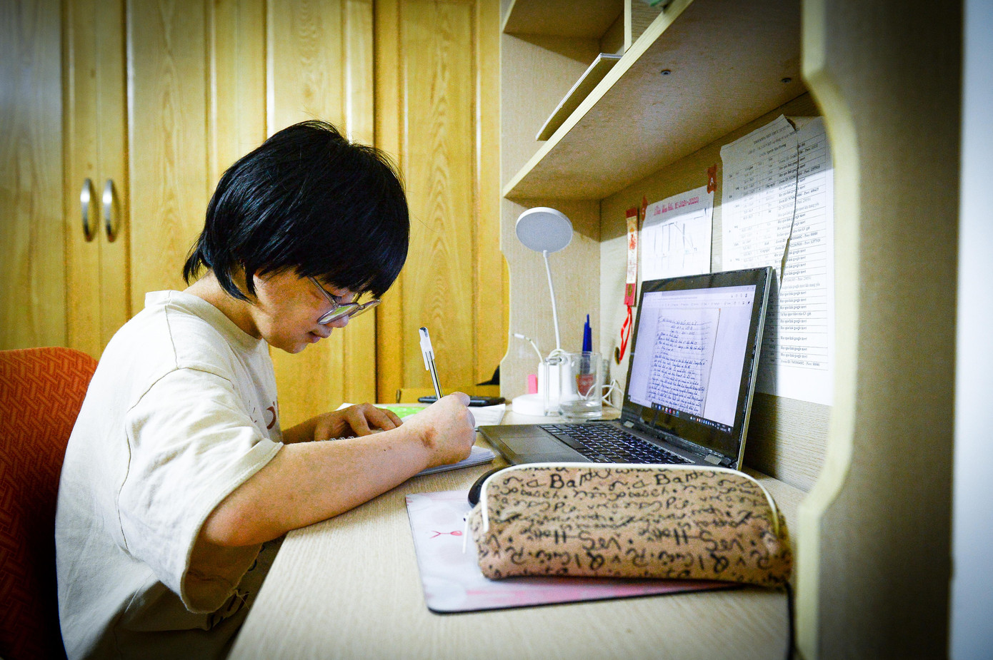 | Minh Anh khi học bài. |