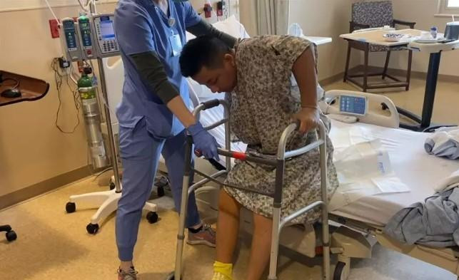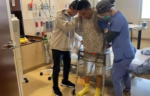 Sau đó, Khoa Pug học cách sử dụng xe lăn và được cho đi ra bên ngoài khu vực phòng bệnh. Hiện tại, đôi chân của Khoa Pug chỉ chịu được 50% trọng lượng cơ thể nên anh cần sử dụng khung tập đi đúng cách để giảm áp lực cho đôi chân.