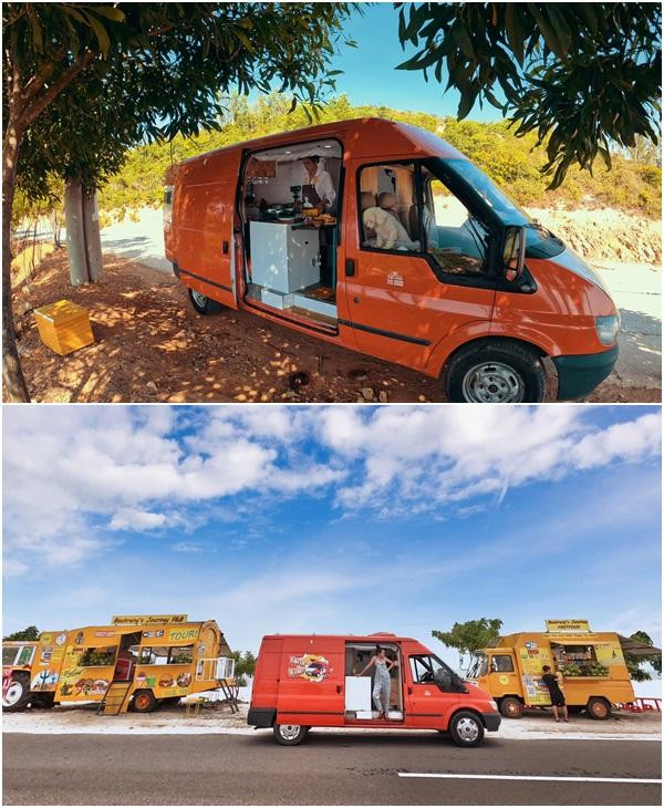 Tìm hiểu trong 2 tháng để mua rồi cải tạo, đi đăng kiểm lại theo đúng quy định, chiếc xe ôtô 16 chỗ đã “lột xác” thành nhà di động với màu cam rực rỡ để thỏa mãn đam mê du lịch của cặp vợ chồng trẻ. Trong xe có đầy đủ các món đồ phục vụ sinh hoạt cơ bản như giường, bàn bếp, bồn rửa, tủ lạnh, tủ chứa đồ, bàn làm việc, vòi tắm và toilet. Vật liệu để làm các đồ trong xe chủ yếu là gỗ thông, những đồ chạy điện đều sử dụng năng lượng mặt trời. Chi phí nội thất khoảng hơn 100 triệu đồng.